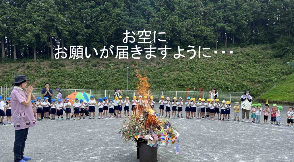 翌日、笹飾りはおたき上げをします。子どもたちのお願い事は煙と共にお空に上がります💨きっとお空の神様に届きましたね(๑・̑◡・̑๑)
