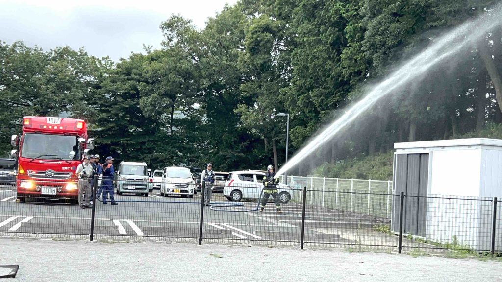 特別にポンプ車からの放水を見せてくれました。水の勢いはすさまじく、その音と水しぶきの量に子どもたちはびっくり‼️かっこいい消防士さんたちに大きな拍手が湧き起こりました👏