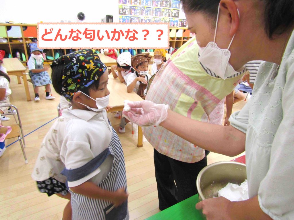 『ごはんの匂いがする!!』と子どもたち☺️ ぷ〜んと匂いがしてきましたよ。