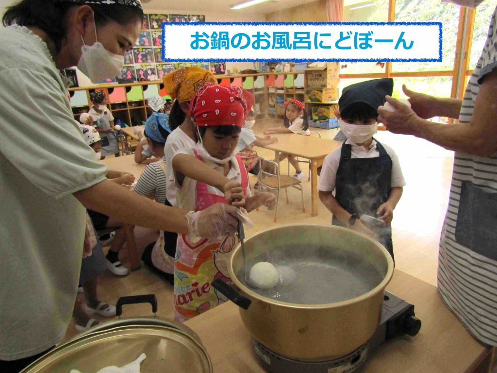 ところで、おだんごをゆでたゆで汁がたくさん余りました・・・。あれれ??園長先生がお料理している👩🍳