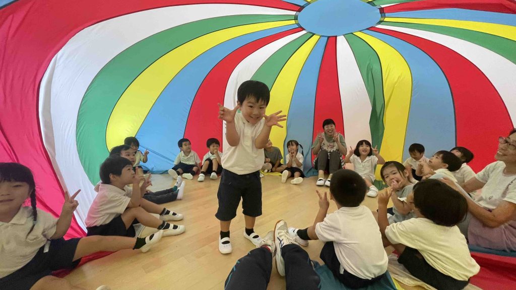 それぞれのクラスで“今、夢中になっているもの”をテーマにした競技。縦割り班での種目も行いました🔴みんなの笑顔が輝いていますね😆