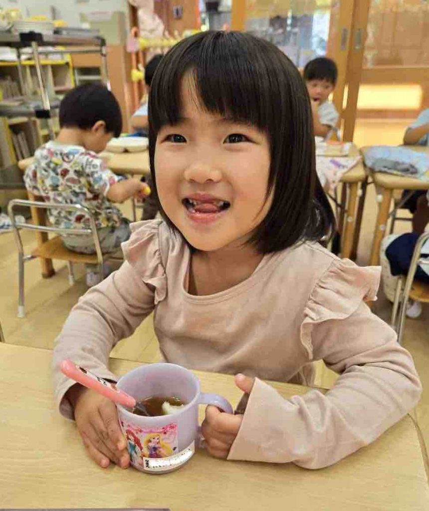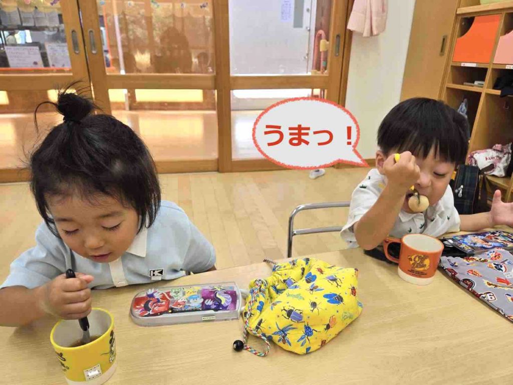園長先生特製のみたらし団子で食べるから!!他のクラスにもごちそうして、みんなでおいしくいただきました!!