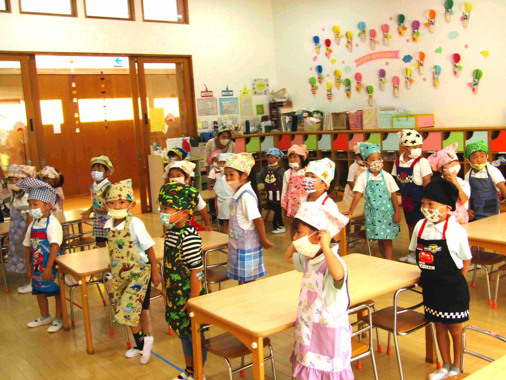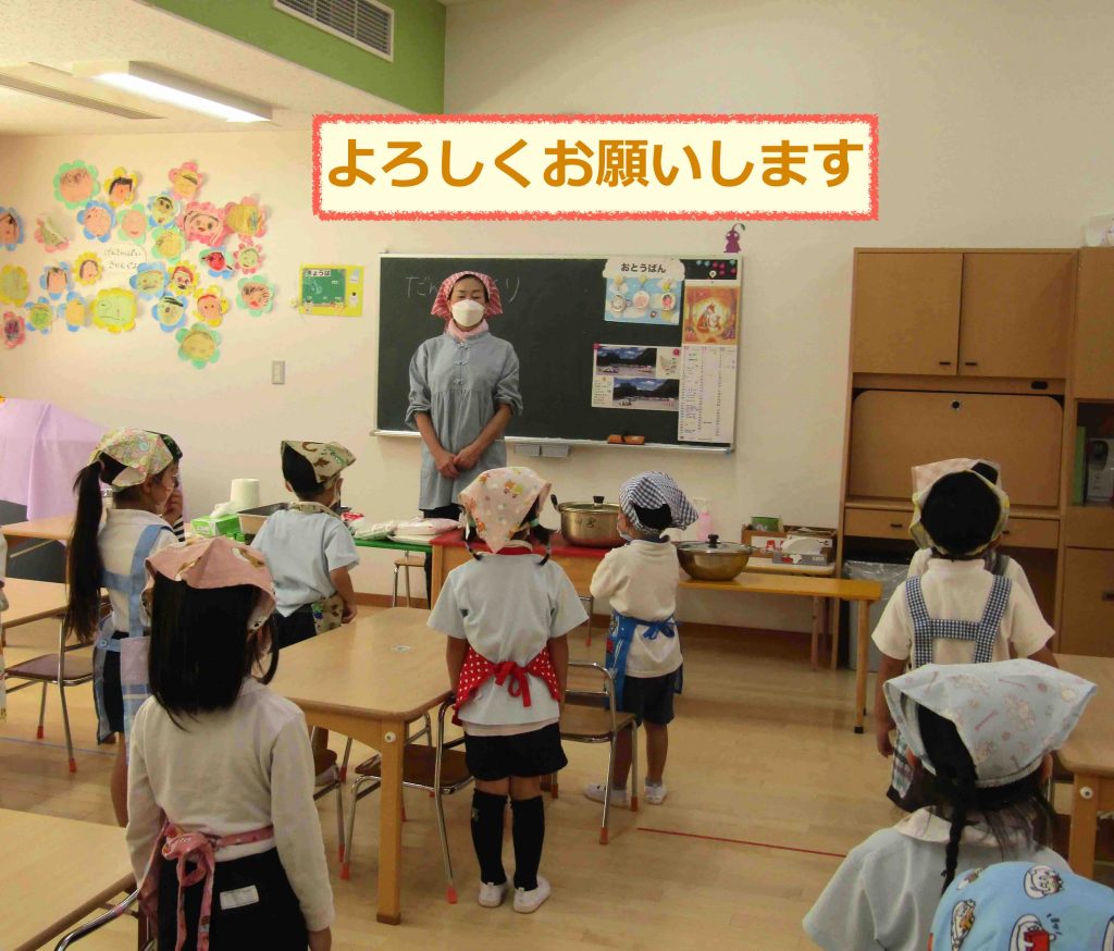 園長先生に作り方を教えてもらうのは・・・4歳児きりん組さん🦒今日が初めてのクッキング👩🍳