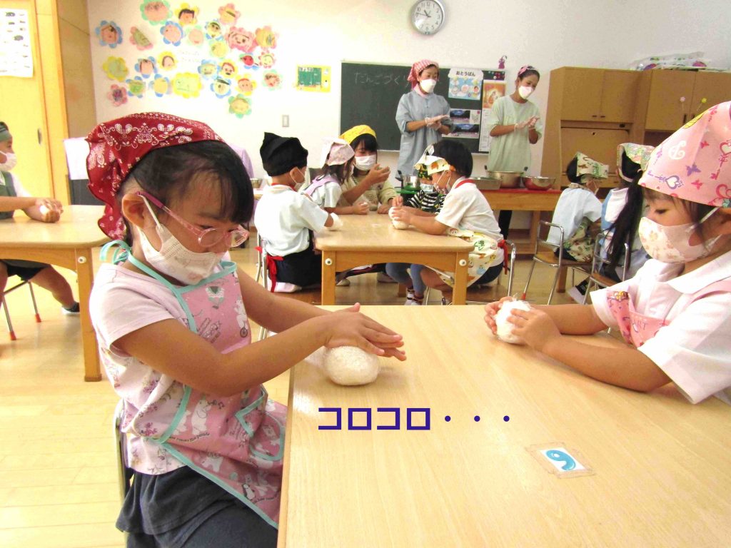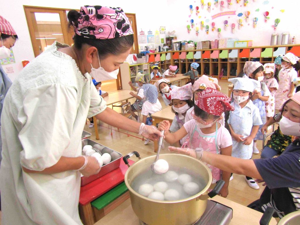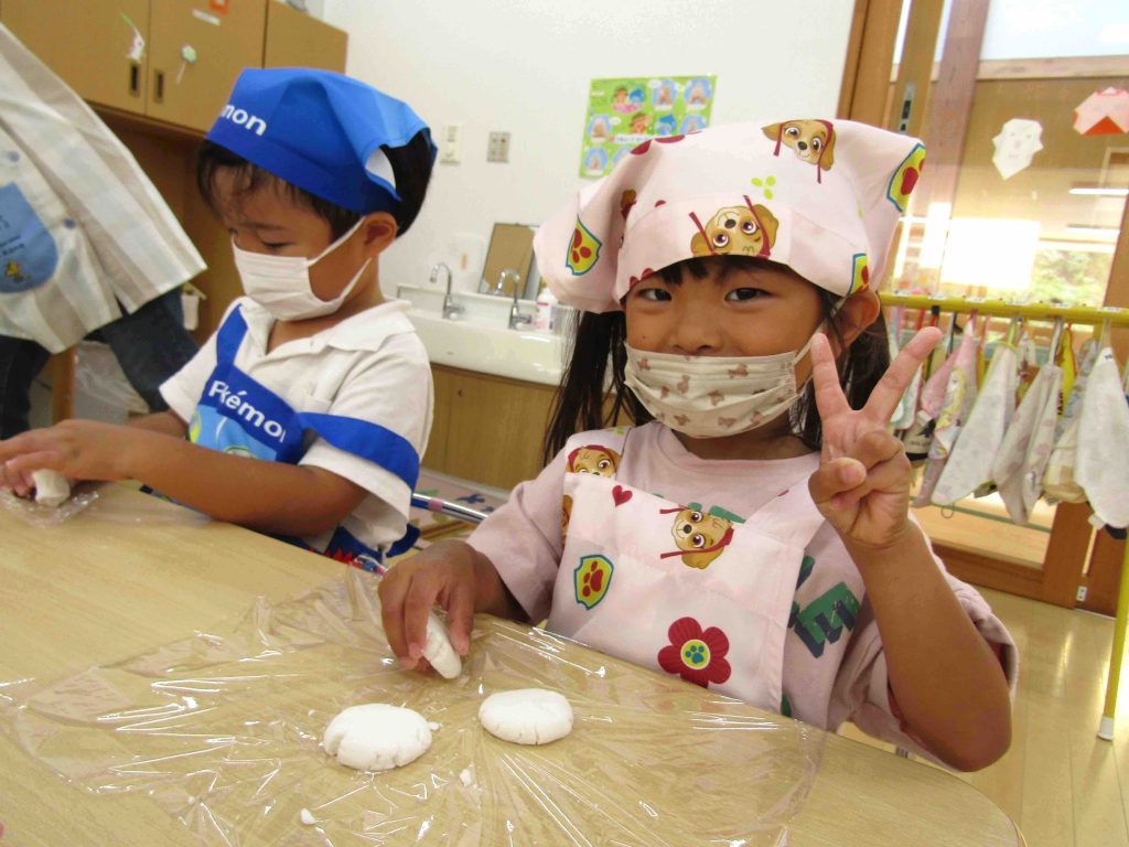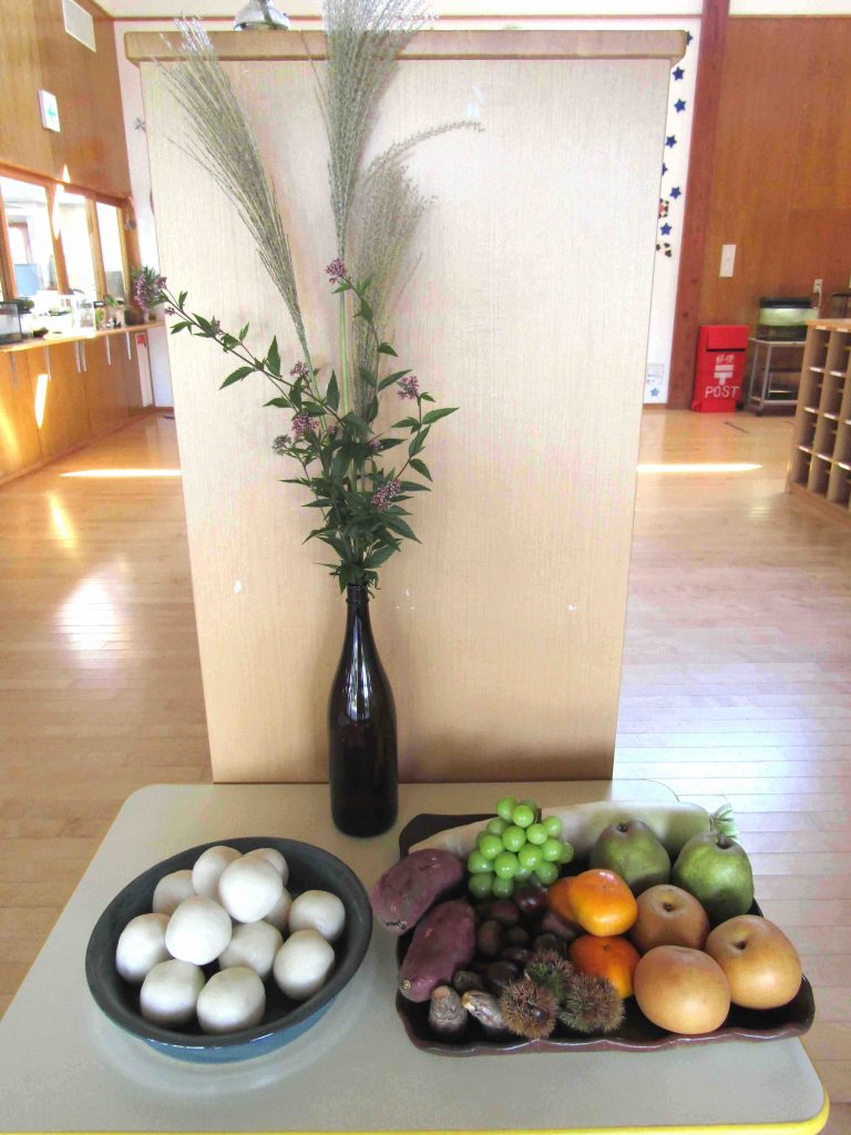 『ねえ、このお団子お月様みたい(*^▽^*)』誰かの一言でお団子トークが始まり、『だからお月様にあげるのかぁ🧐』と子どもたちで納得。実際にお月見団子に携わるから出てきた正解👍何でもやってみるものですね。