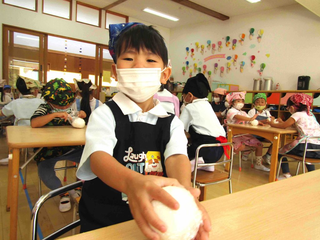 いなだこども園のお月見団子は、子どもたちが作ります!!ソフトボールくらい大きなお団子は、いなだこども園の風物詩です☺️
