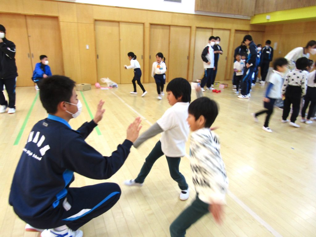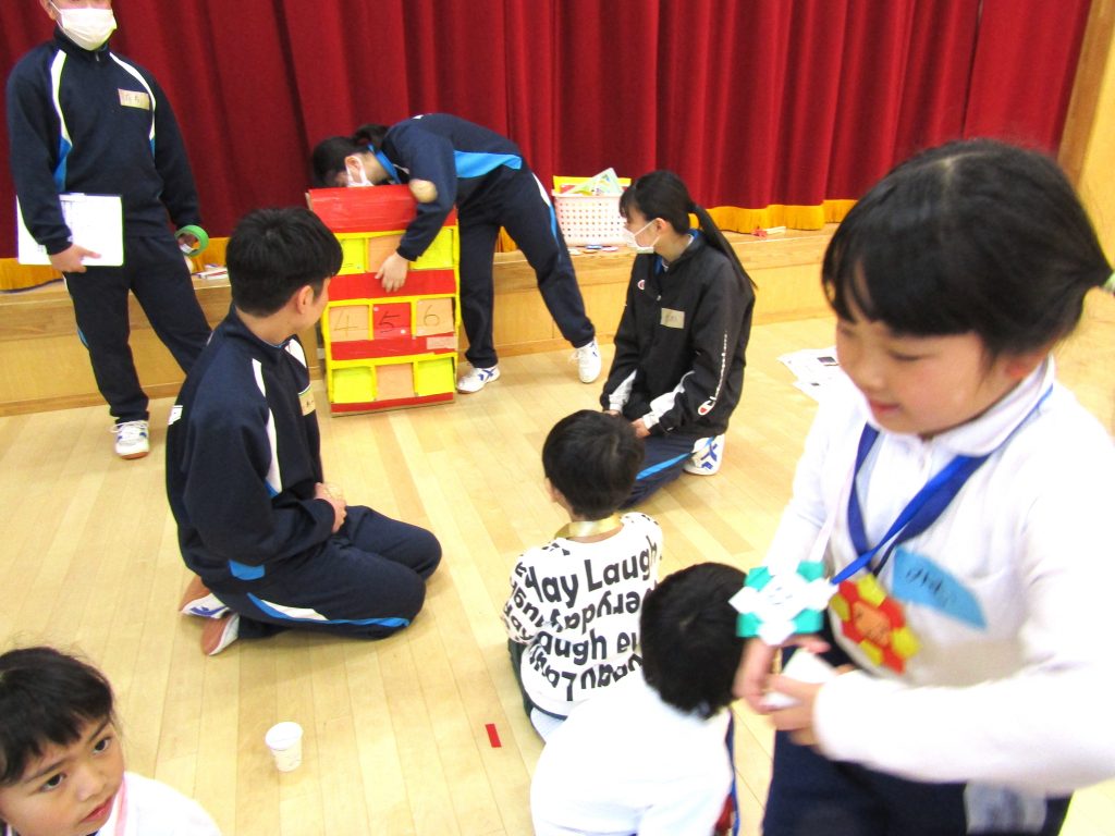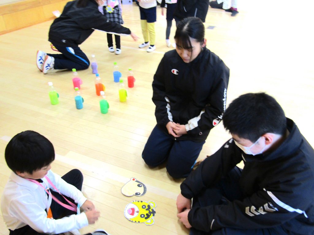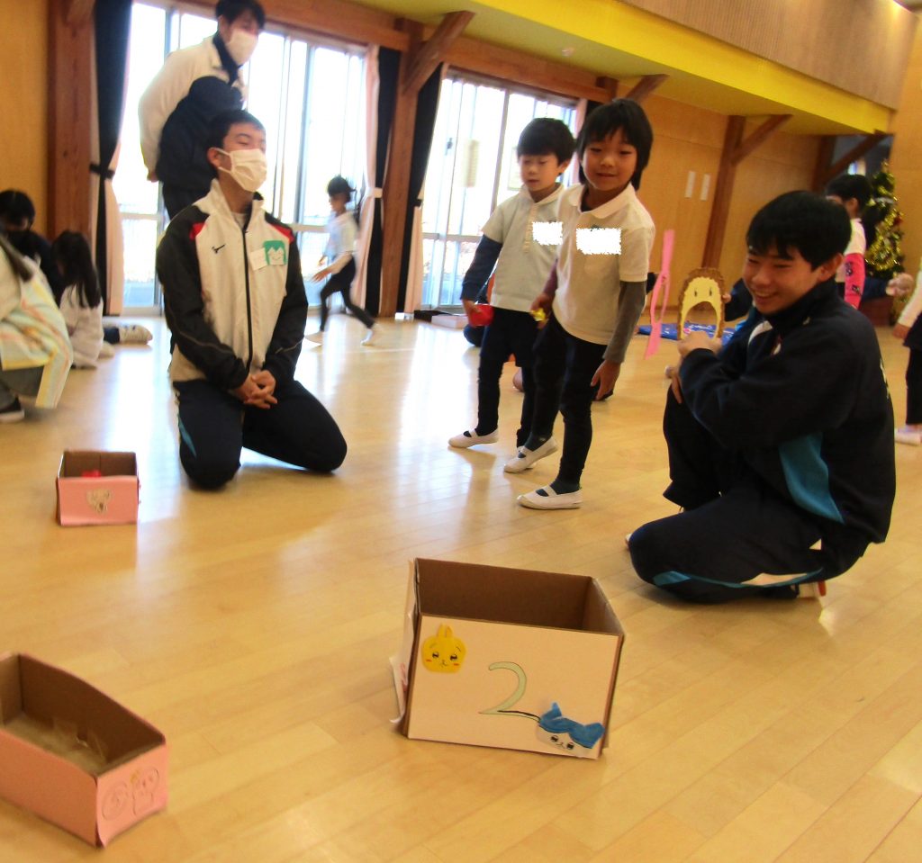 中学生がこども園の子どもたちのために考えて、ゲームを作ってきてくれました!