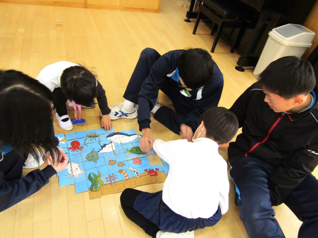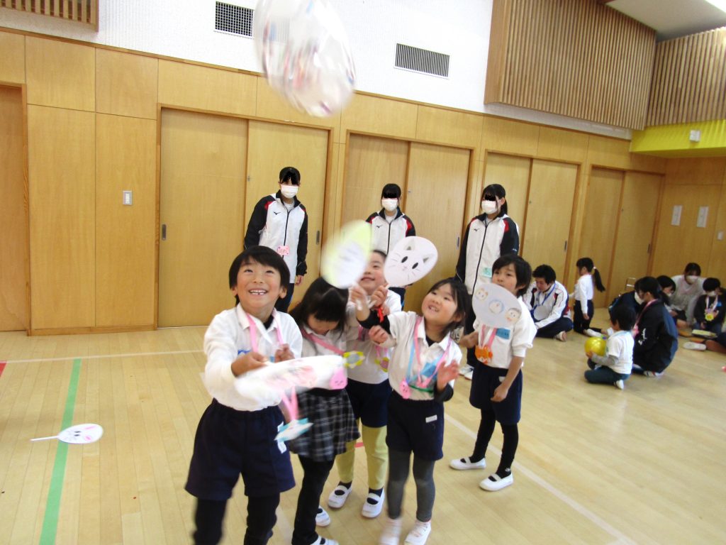 今日は年長さんが体の大きなお兄さん・お姉さんと一緒に遊びます😊