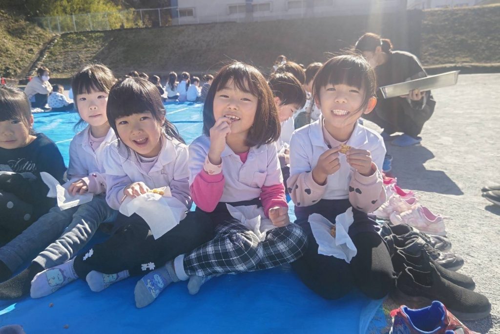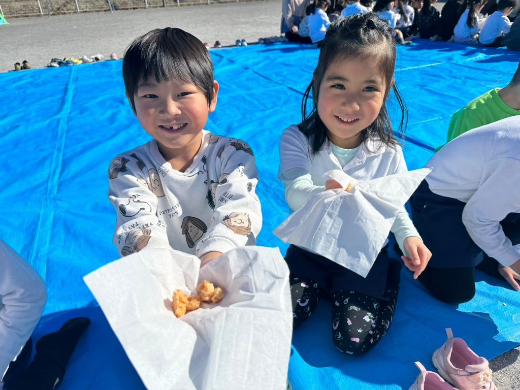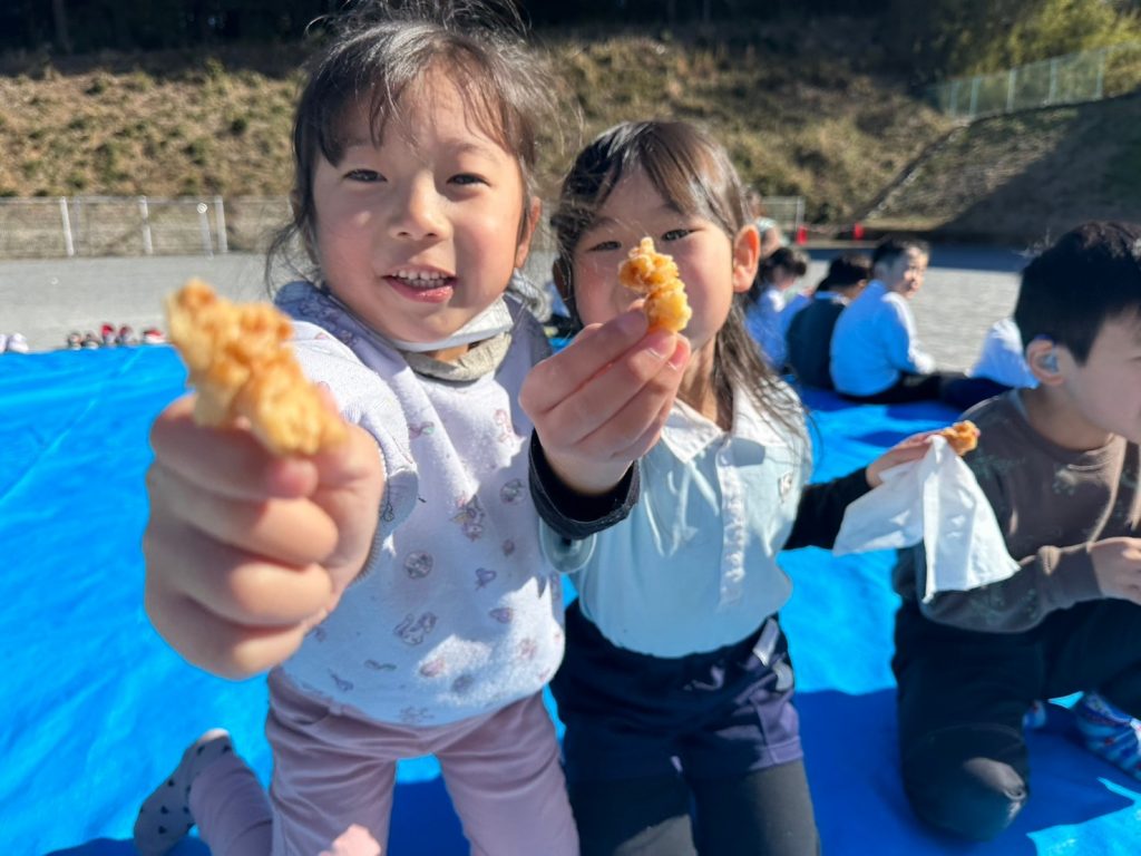 園長先生特製、福餅で作った揚げ餅をみんなでいただきます😋
