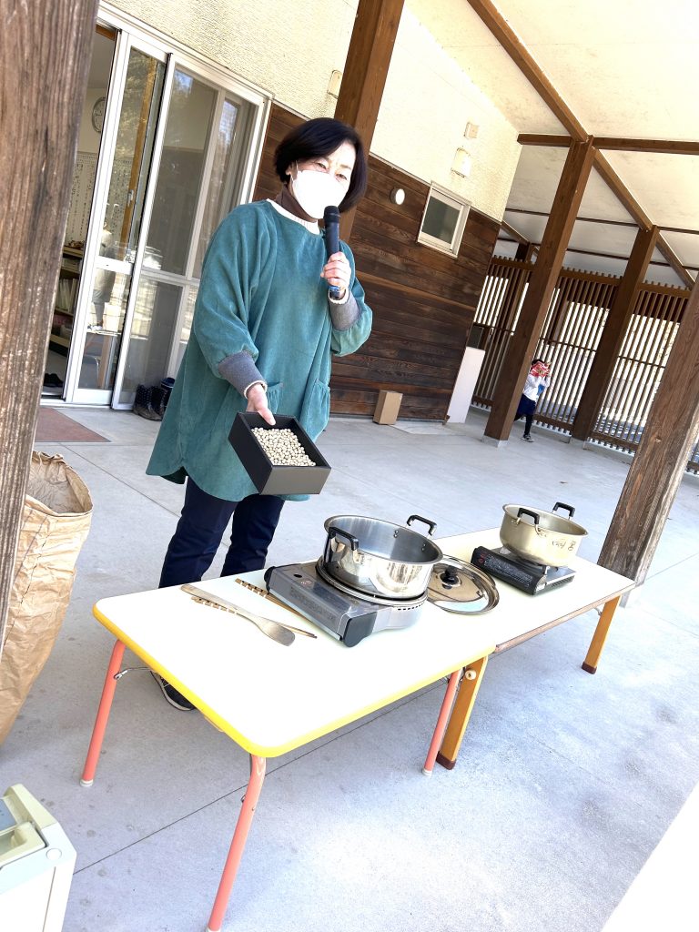 大豆はいなこ農園で採れた大豆です!これを煎ると香ばしい匂いが👃この匂いは鬼が嫌いなんですって!