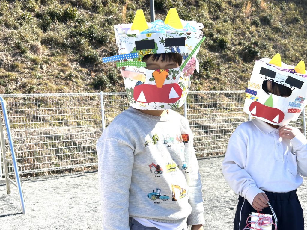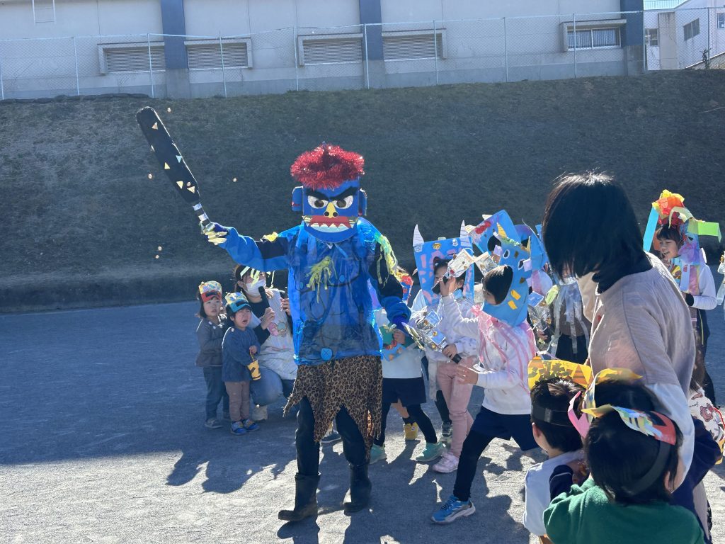 園庭の外からやってきたのは赤鬼と青鬼‼️
