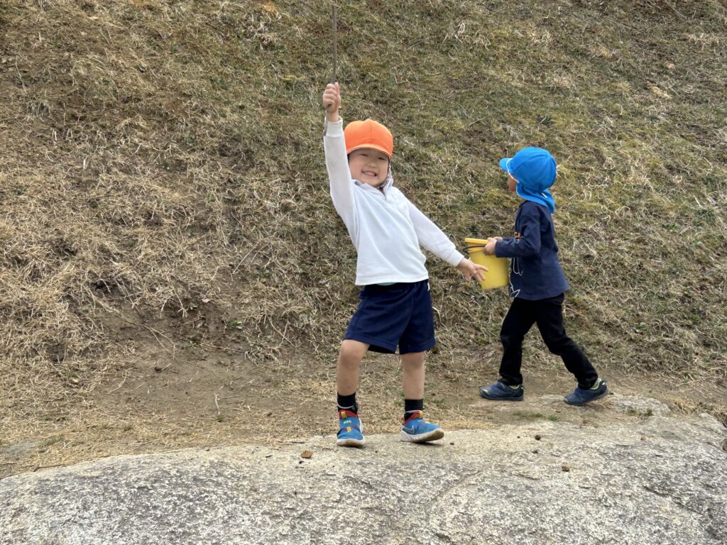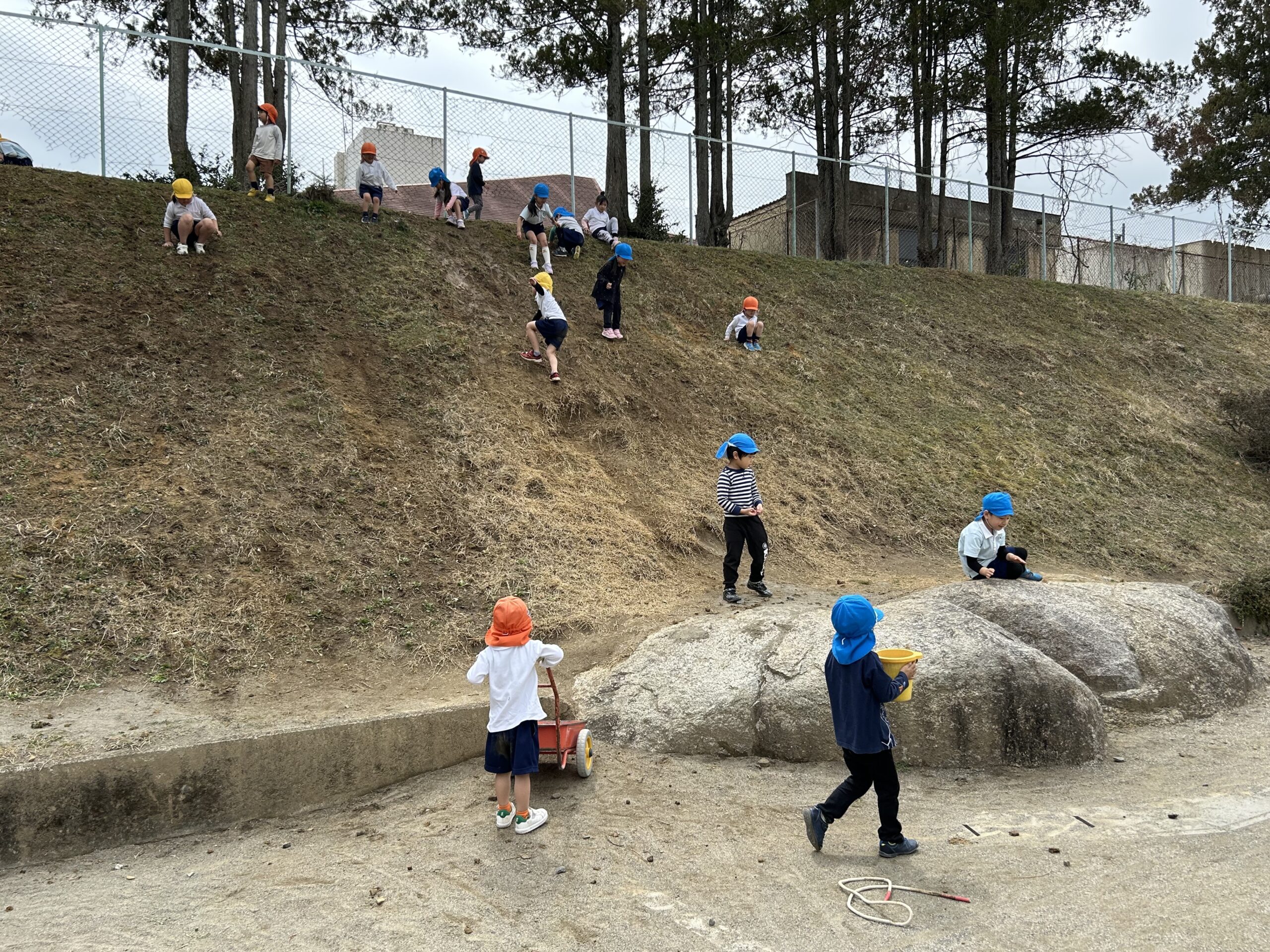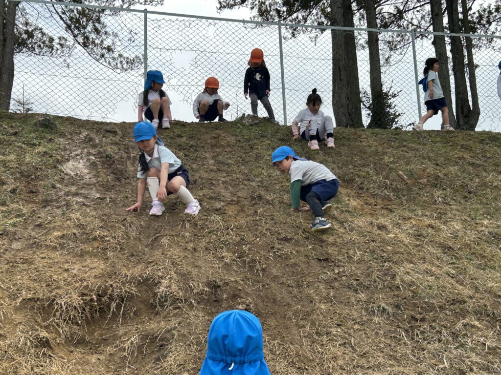 こうしている今も、園の土手を元気に駆け上がる子どもたち😊