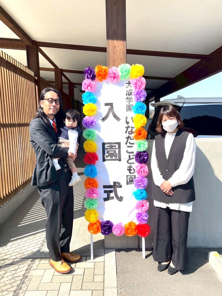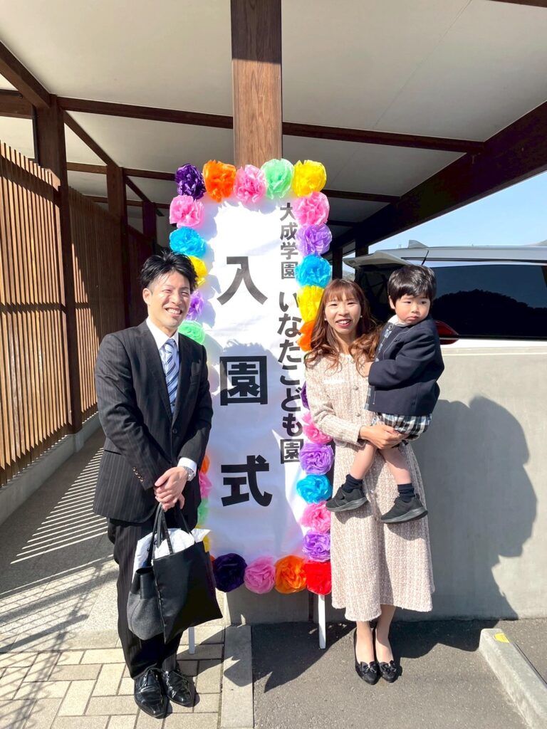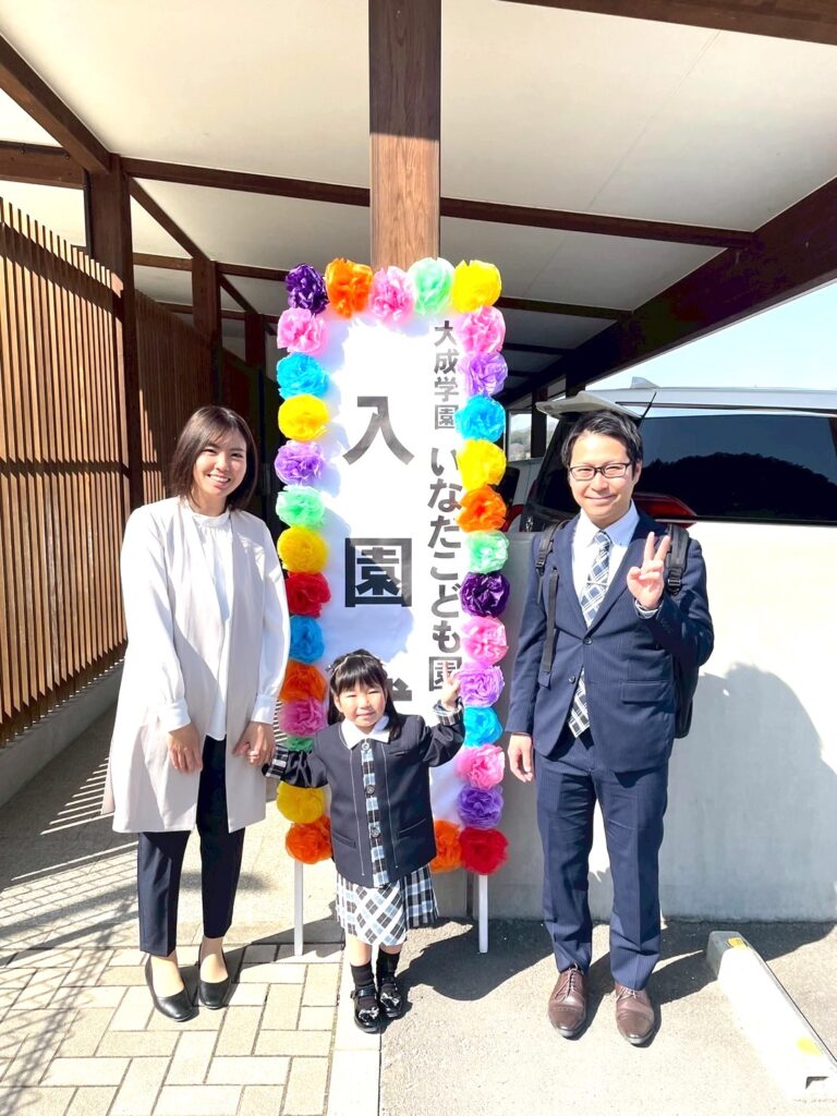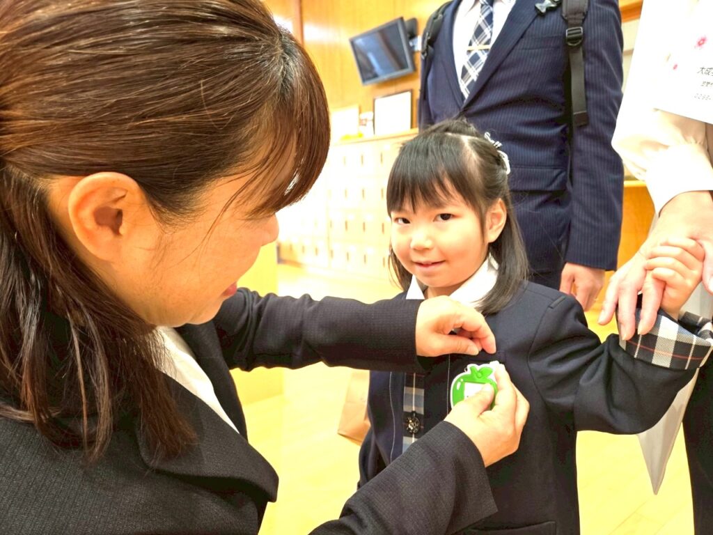 お家の人とドキドキしながら門をくぐった入園児さん♡胸章をつけたら、ニコニコの笑顔に😄