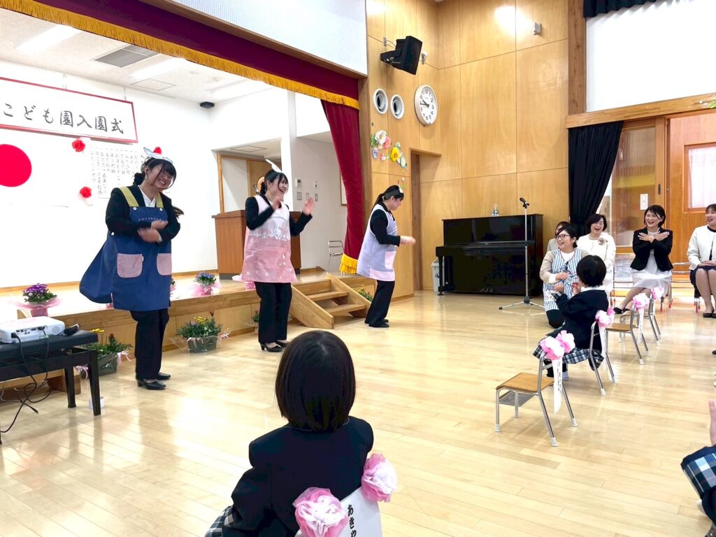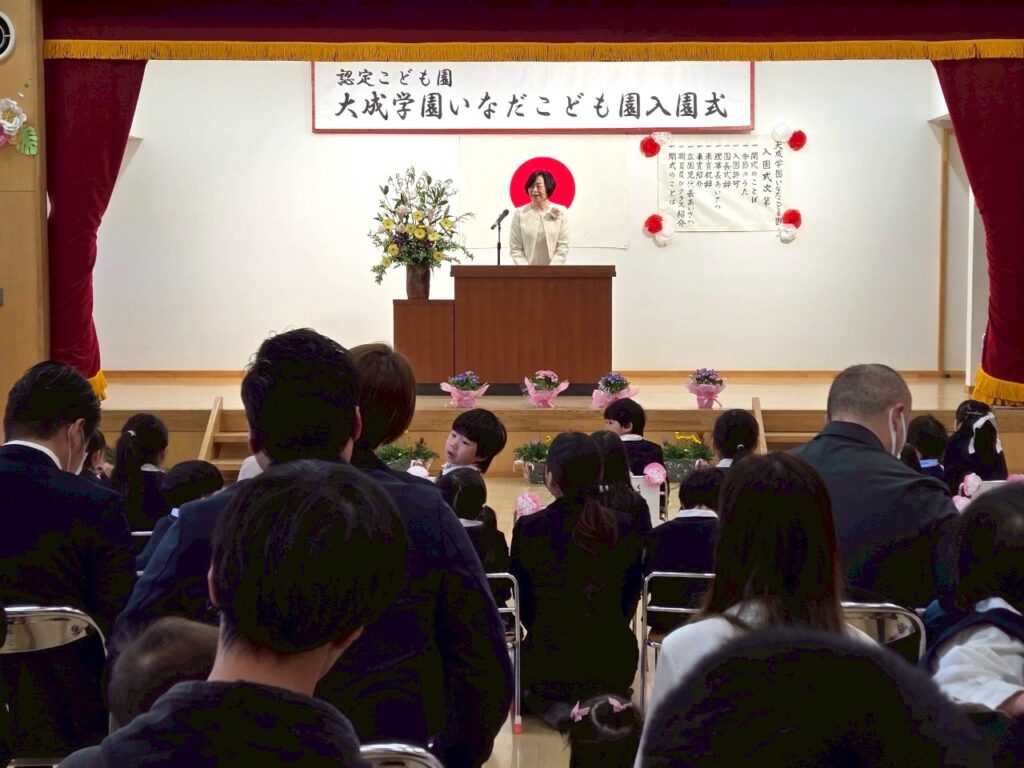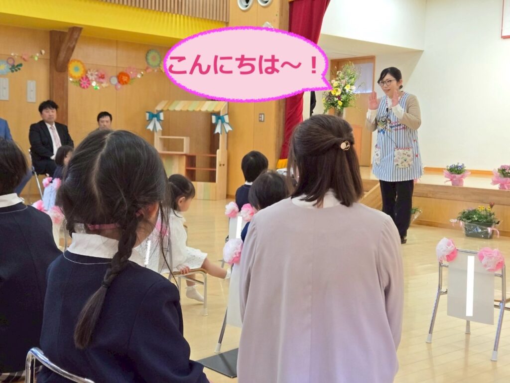 式の中で、園長先生から『いなだこども園で毎日楽しく過ごしましょう』とお話がありました。