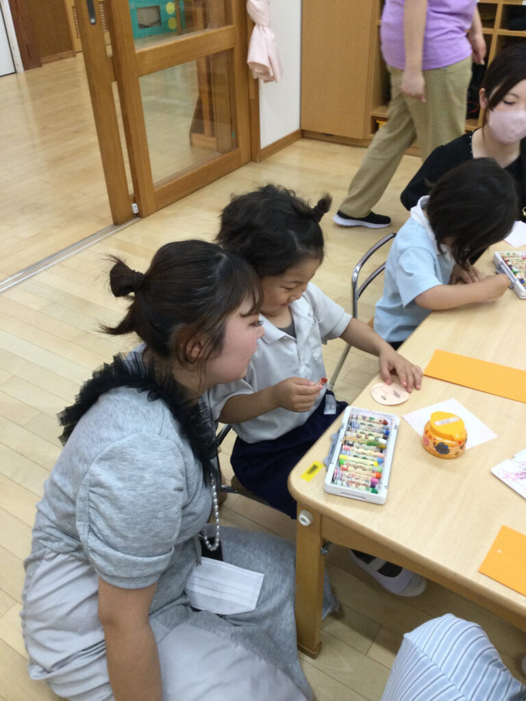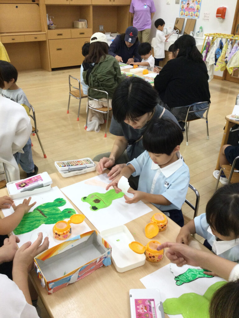 お部屋に入ってからは親子制作など、おうちの人と年齢別の活動を楽しみました。