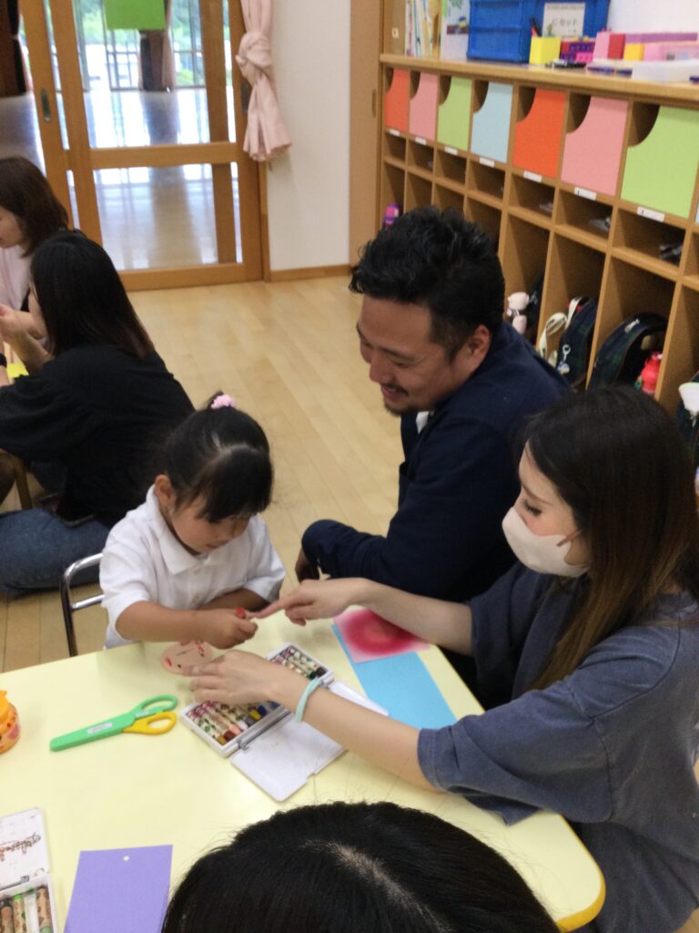 普段はお友達と一緒に行う活動を、おうちの人と一緒にできてニコニコの子どもたちです😆