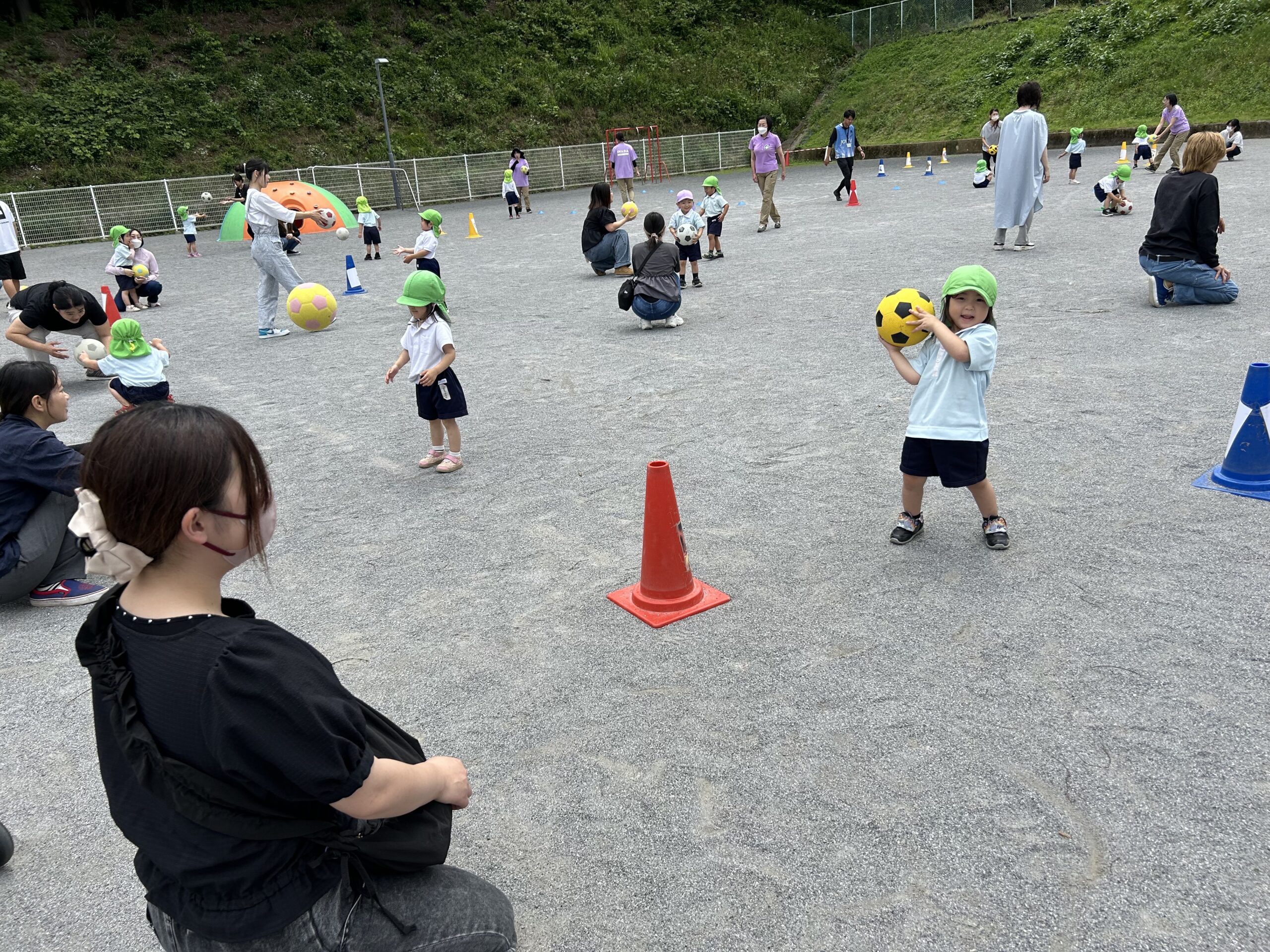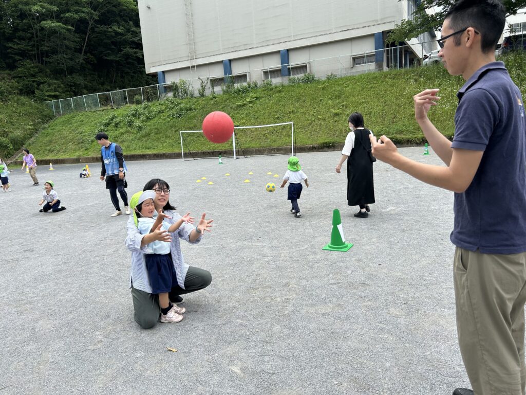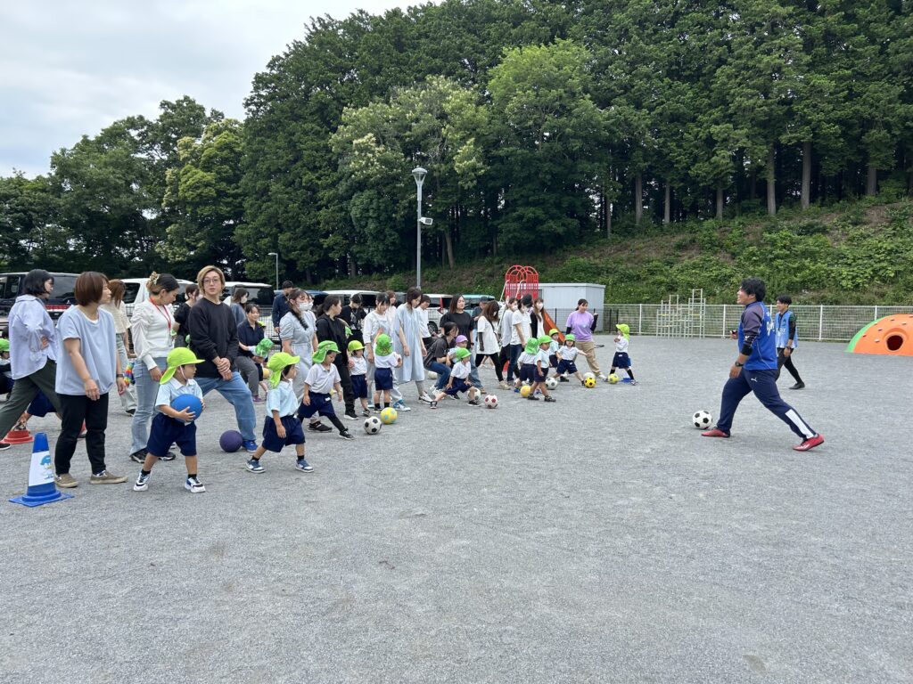 今回の対象クラスは3.4.5歳児で『親子サッカー教室』を企画すると、たくさんの保護者の方にご参加いただくことができました。