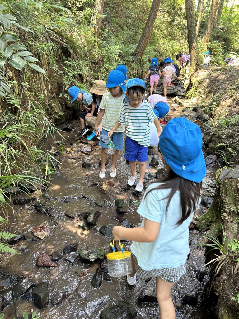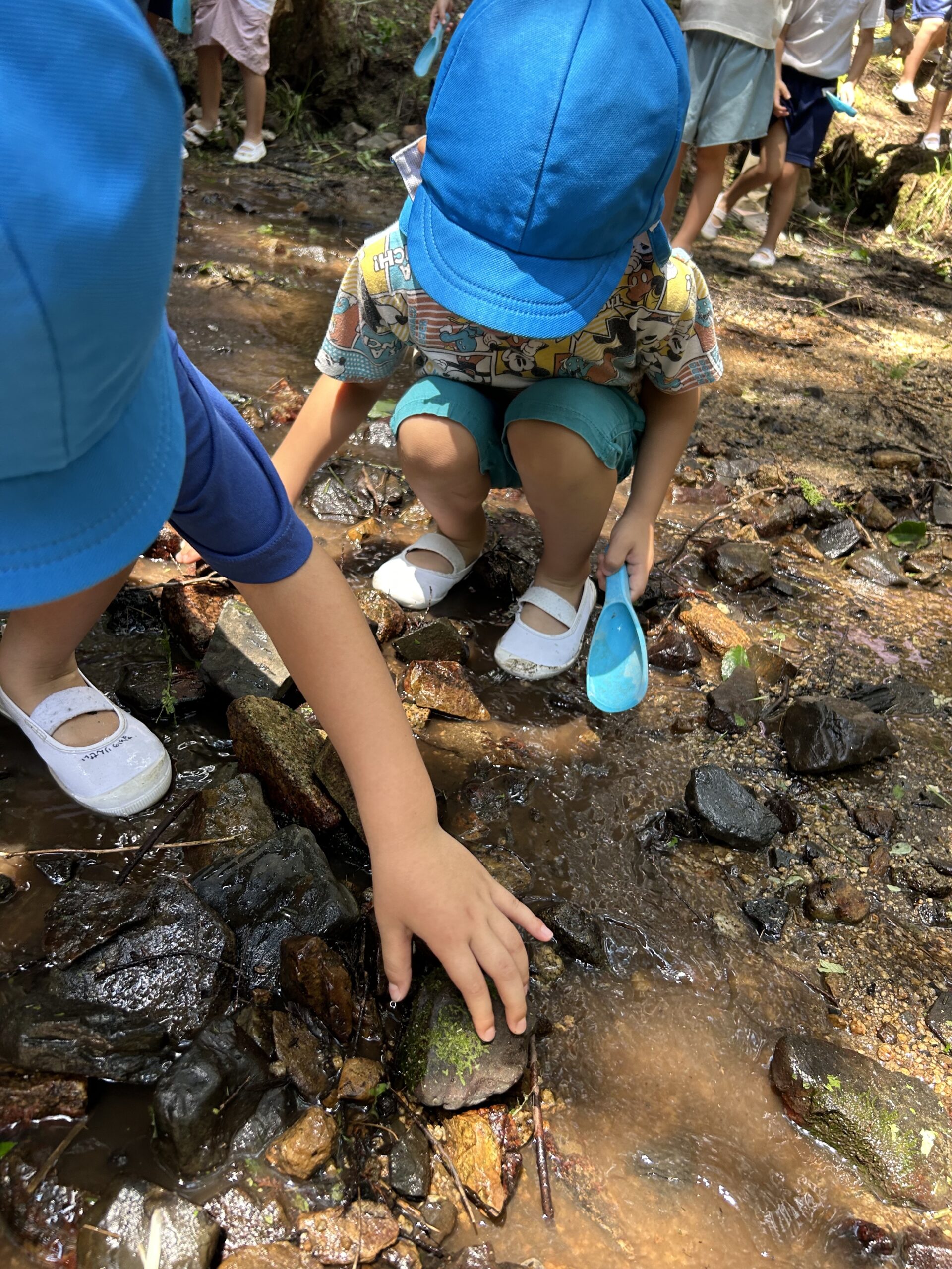 静かに流れる水の中には、どんな生き物がいるのかな?石を動かして見てみよう🪨