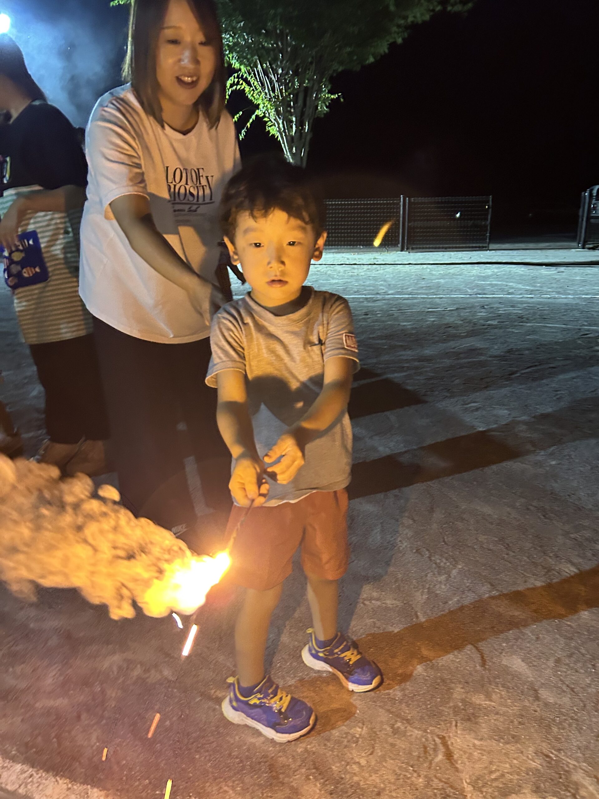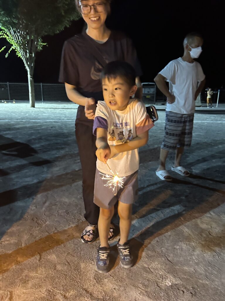 おうちの人がお迎えに来る時間です。最後は親子で花火大会です!