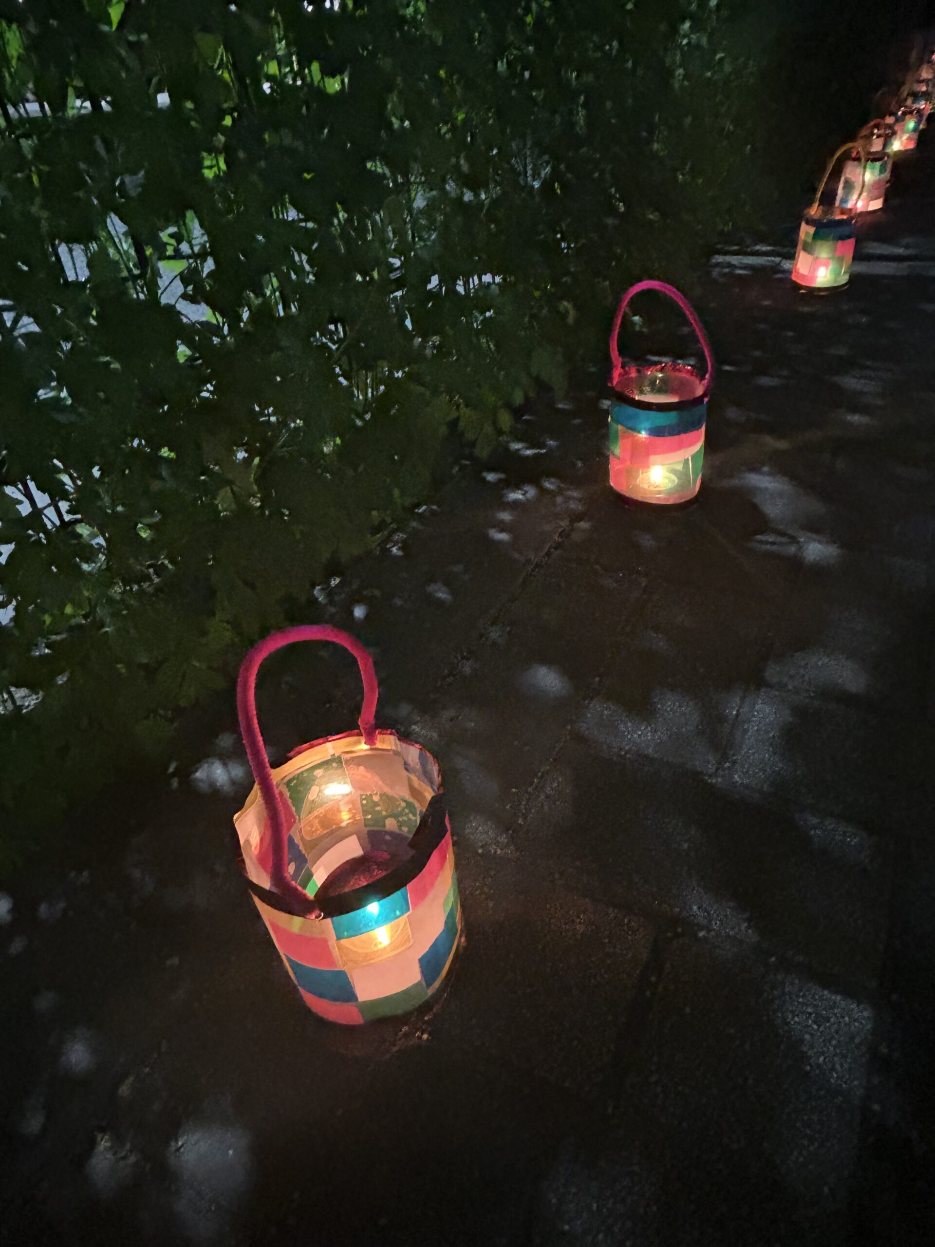 子どもたちが作ったランタンに火が灯り、幻想的な雰囲気になってきました!