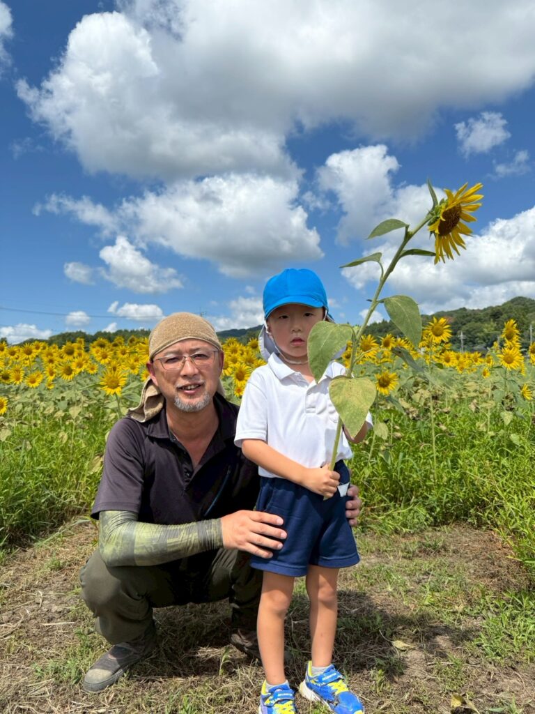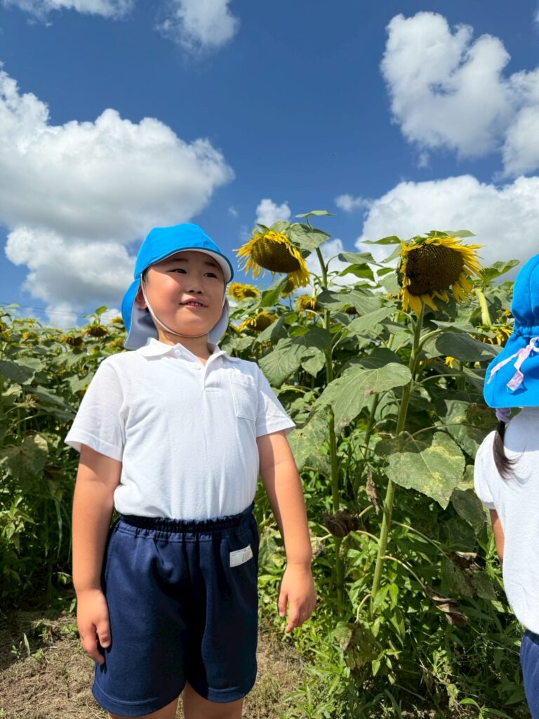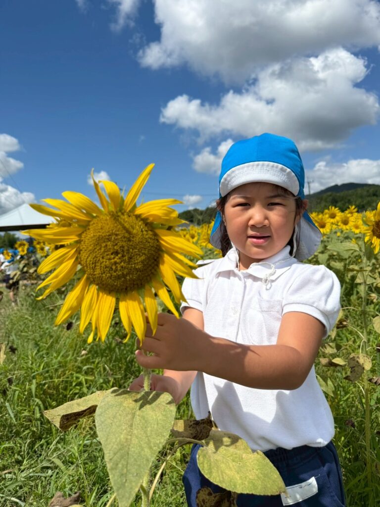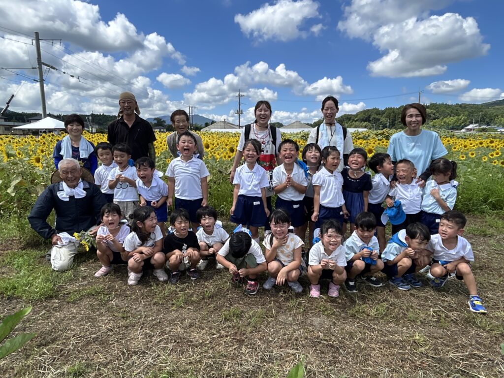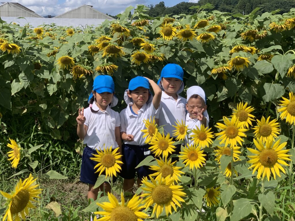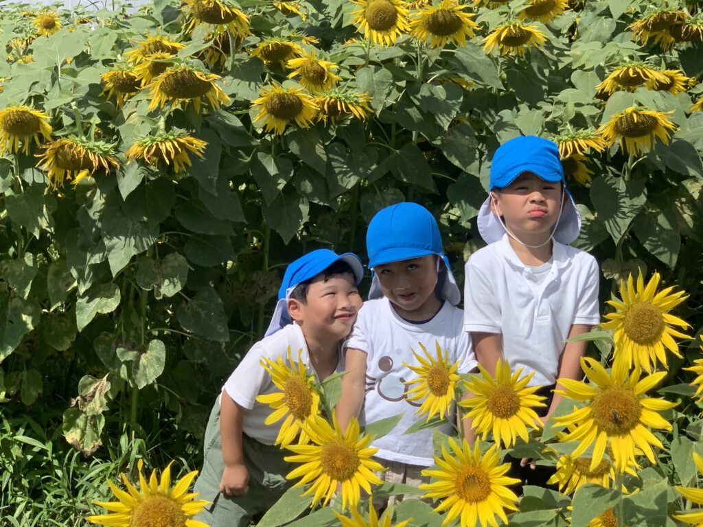 ここで『はいチーズ』!!ひまわりに負けないくらい元気な子どもたち😁