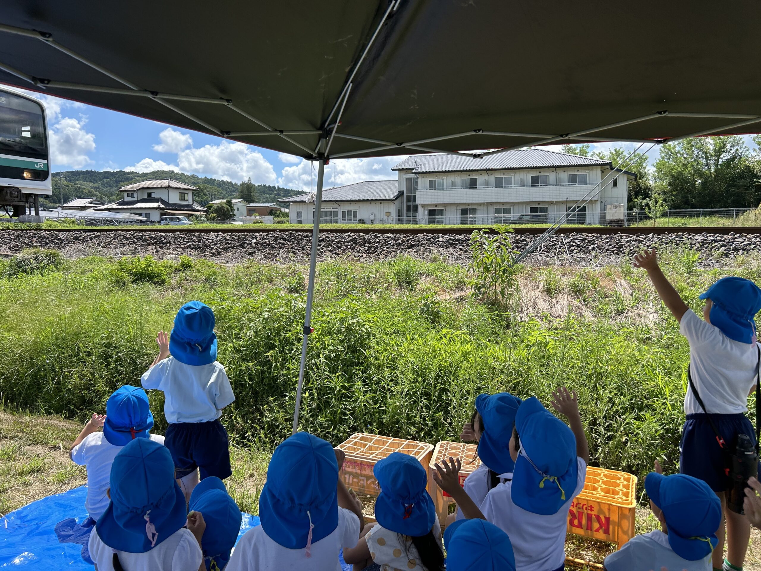子どもたちに気づいた車掌さんが汽笛を鳴らして手を振ってくれました👋