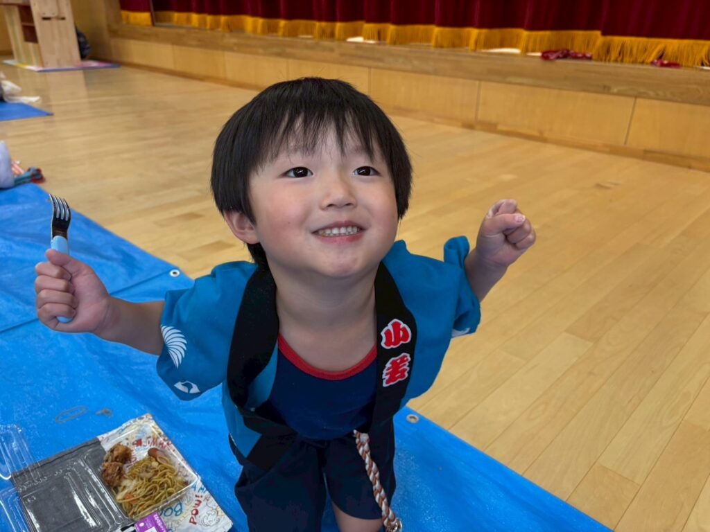 最後はみんなでお昼を食べます。お給食さん特製お祭り弁当🍱