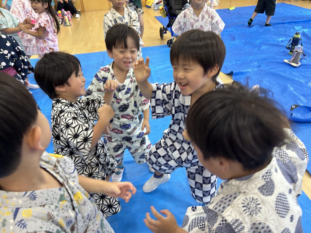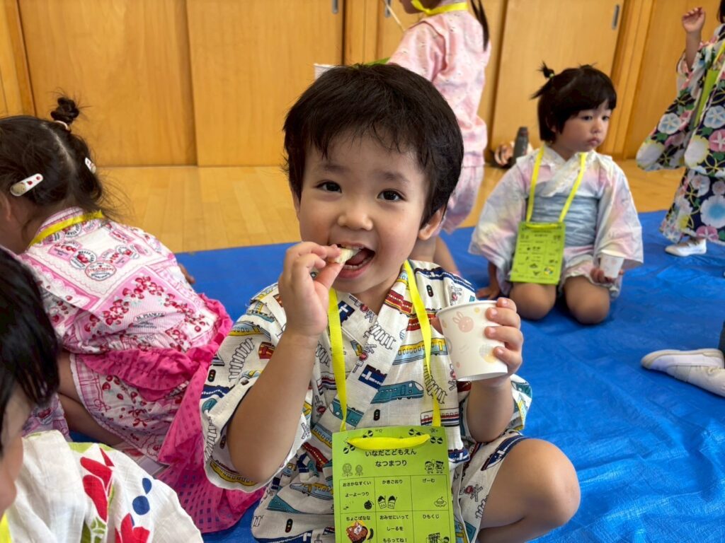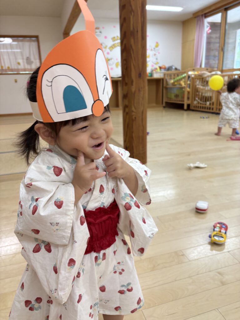 朝から浴衣姿で登園したいなだっこ😊お祭りモードの今日は、夏祭り‼️