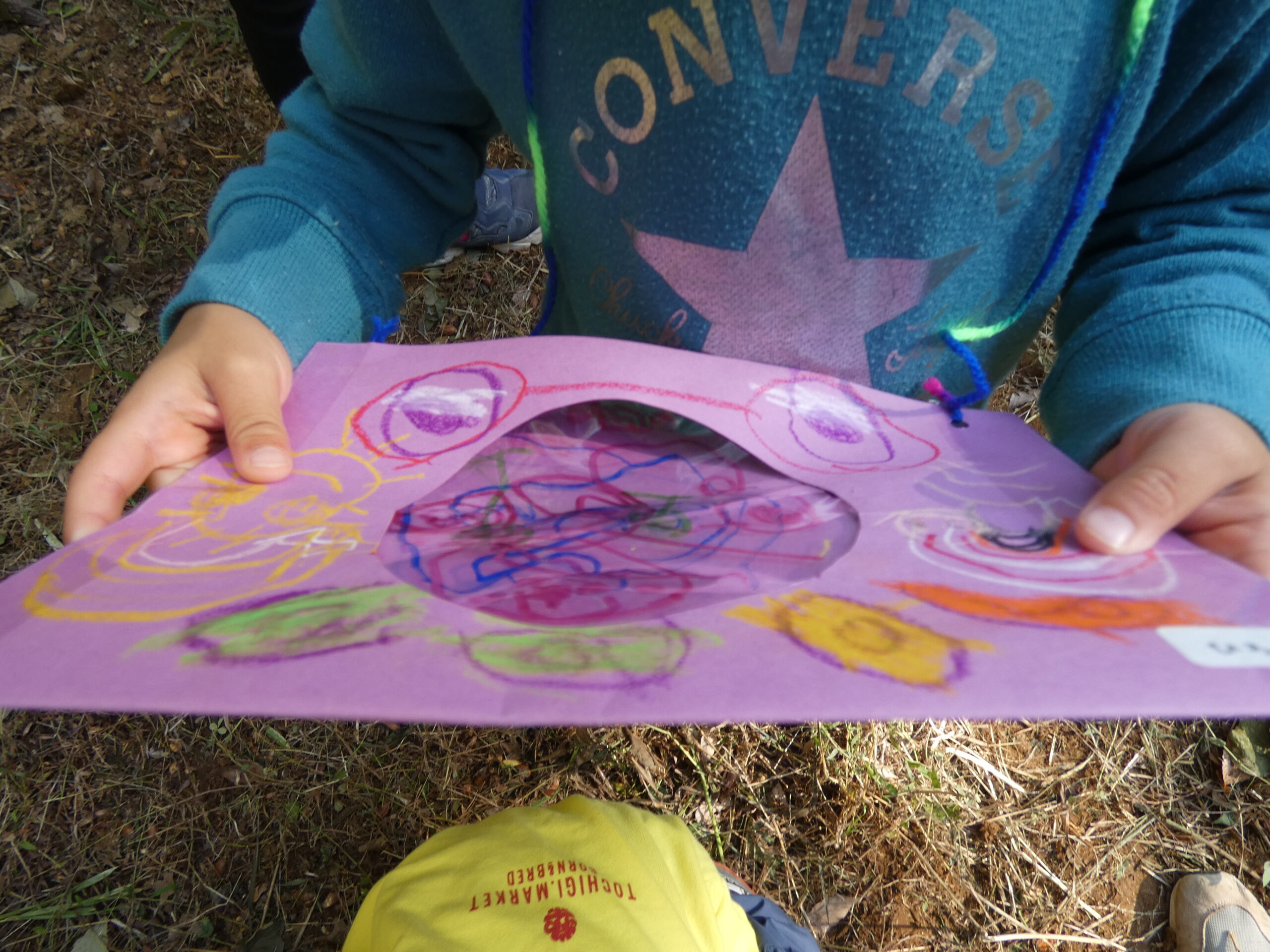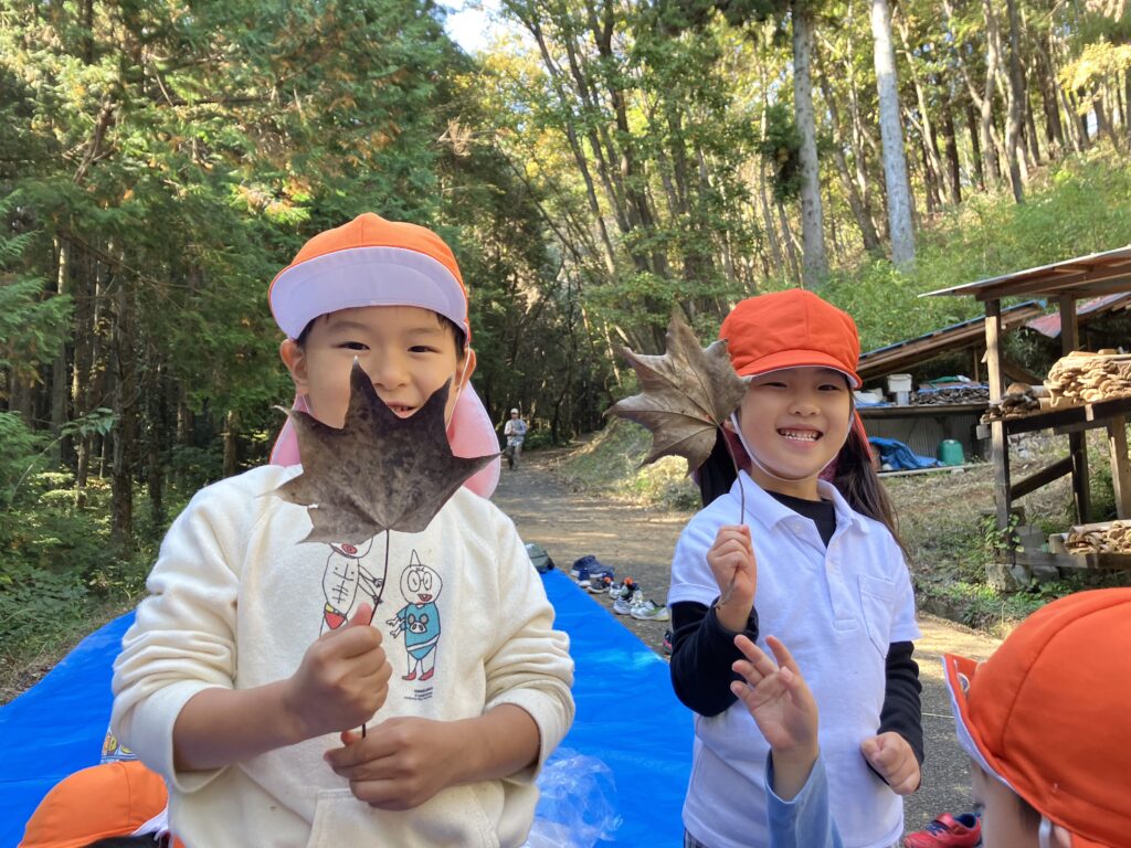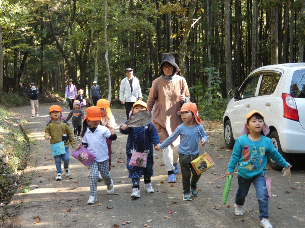素晴らしい先生方に引率していただき、山の中へ出発です。子どもたちは手作りの探検バックを持っていきます🎵