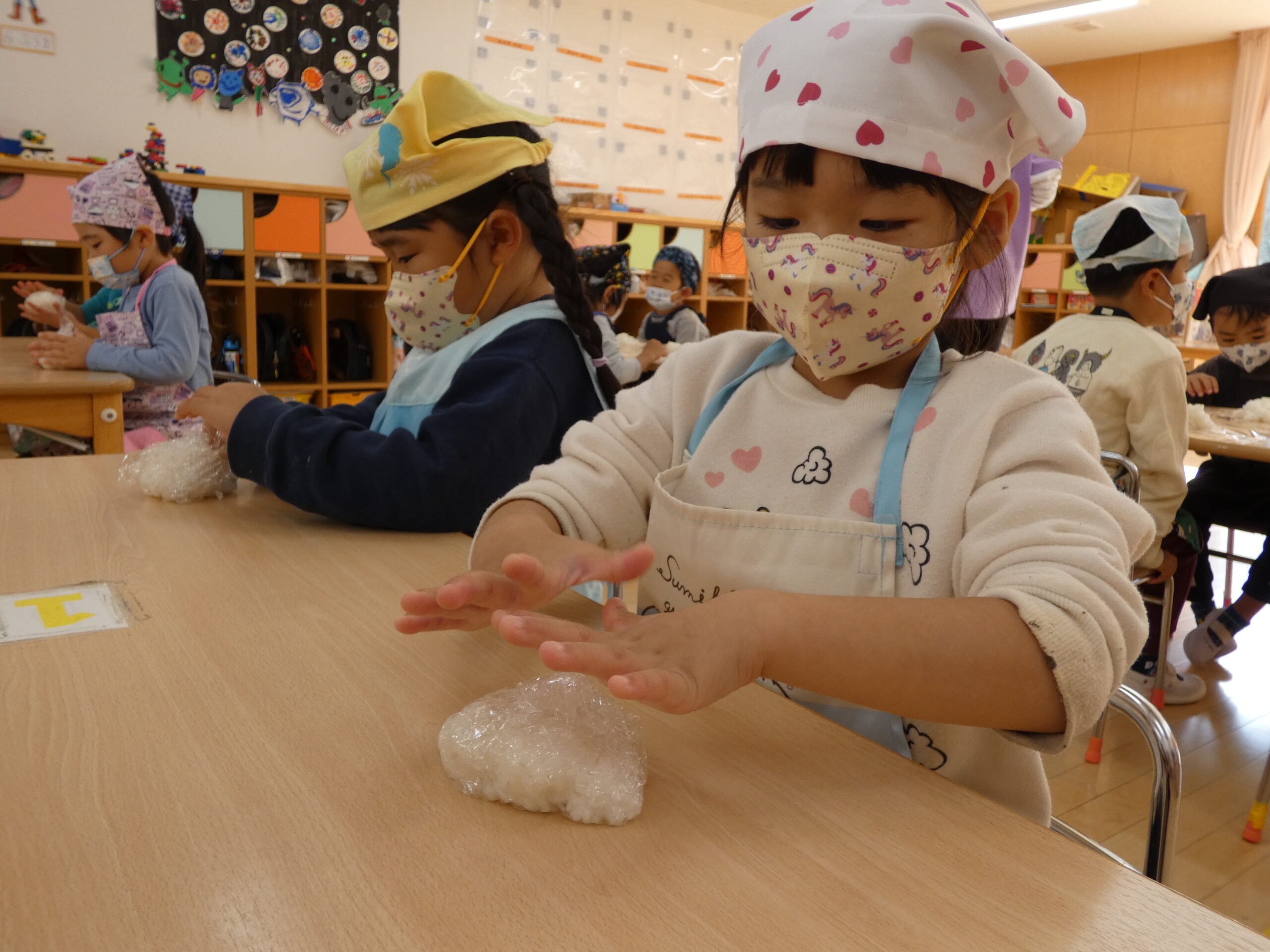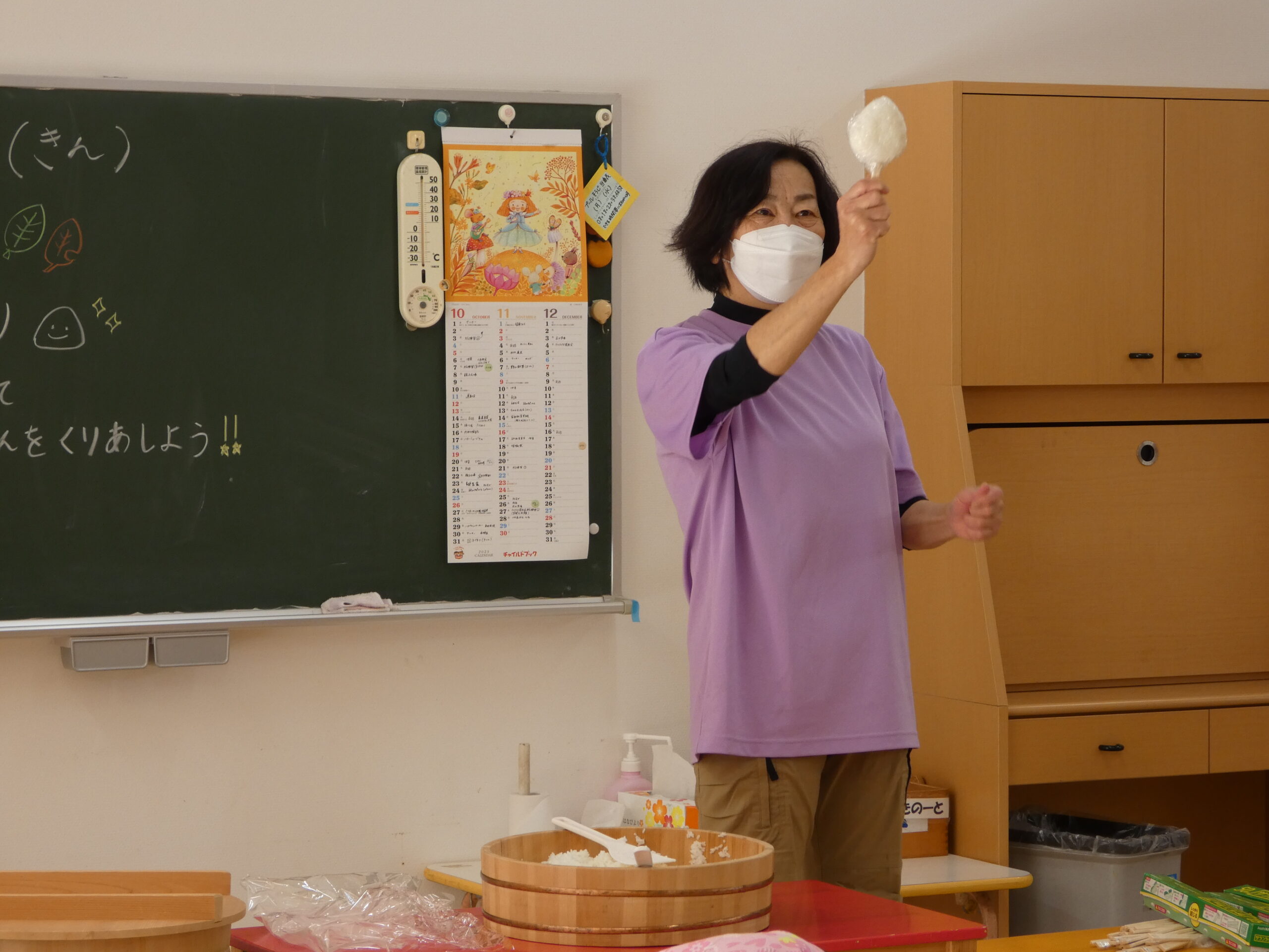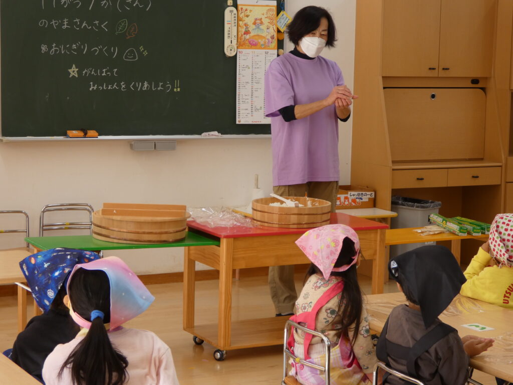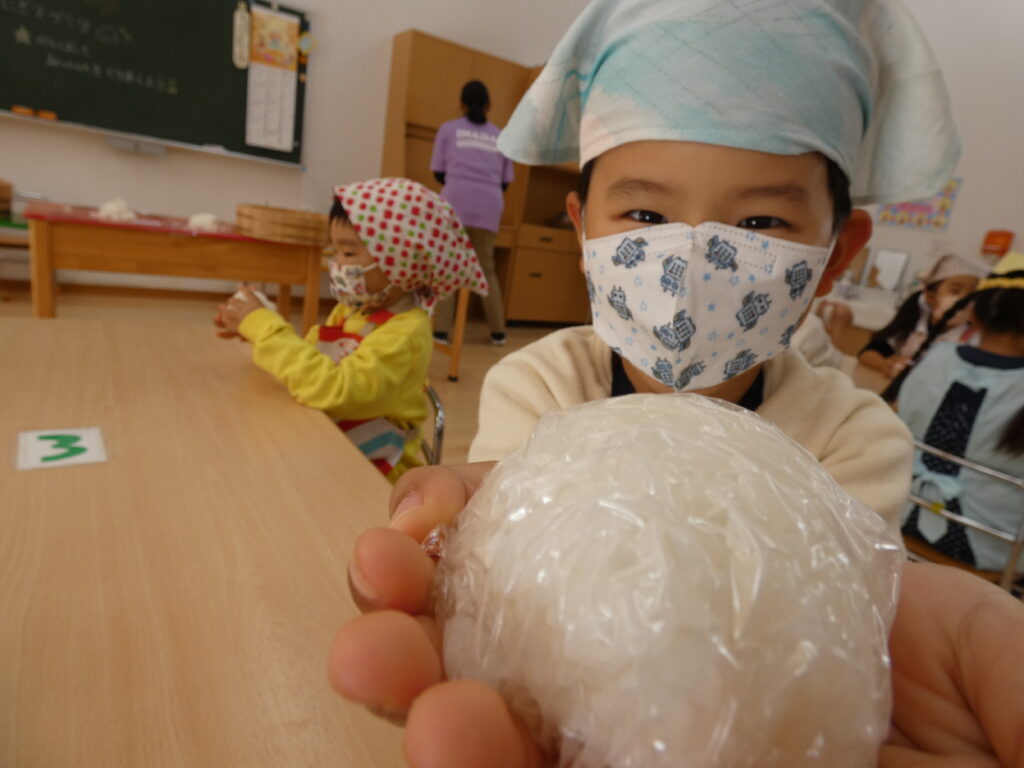 朝1番の体験は、おにぎり作り🍙園長先生がお手本を見せてくれました!