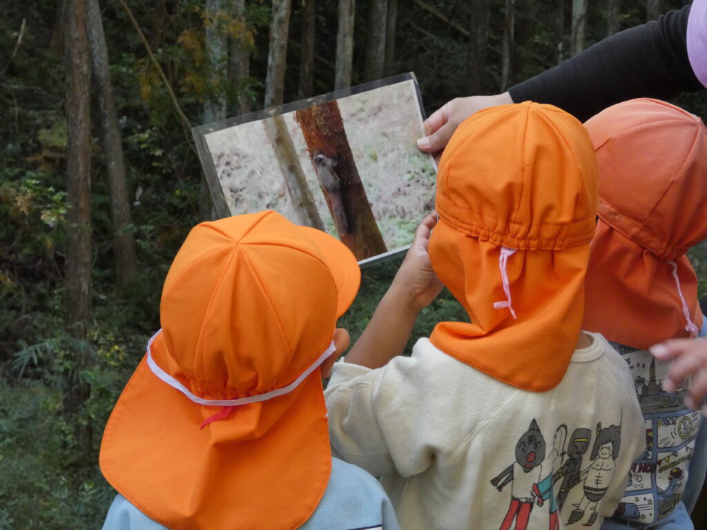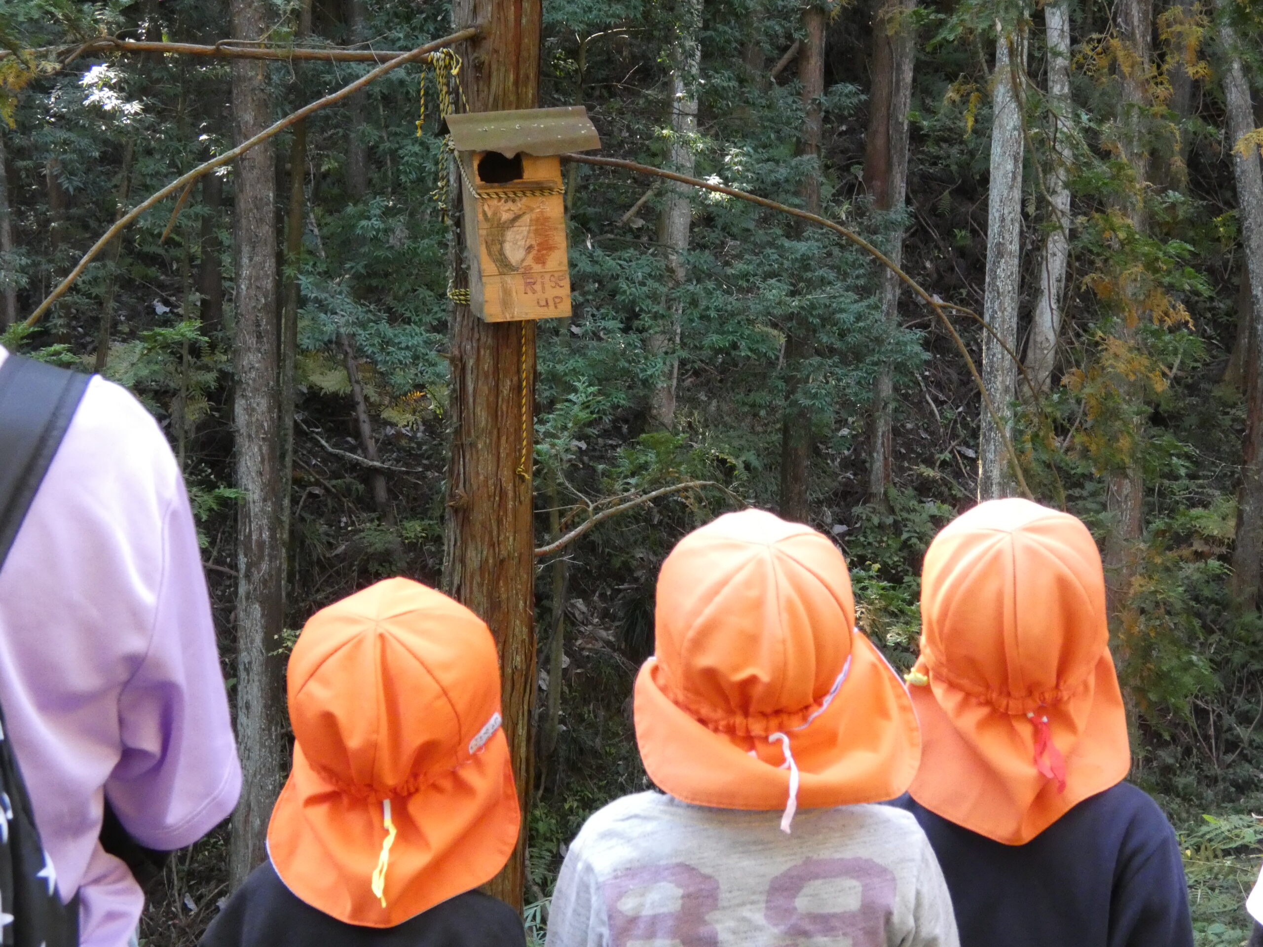 沢が流れる音に気づいたり、ムササビの巣箱を見つけたり・・・子どもたちは目を輝かせながらあたりを見渡します。