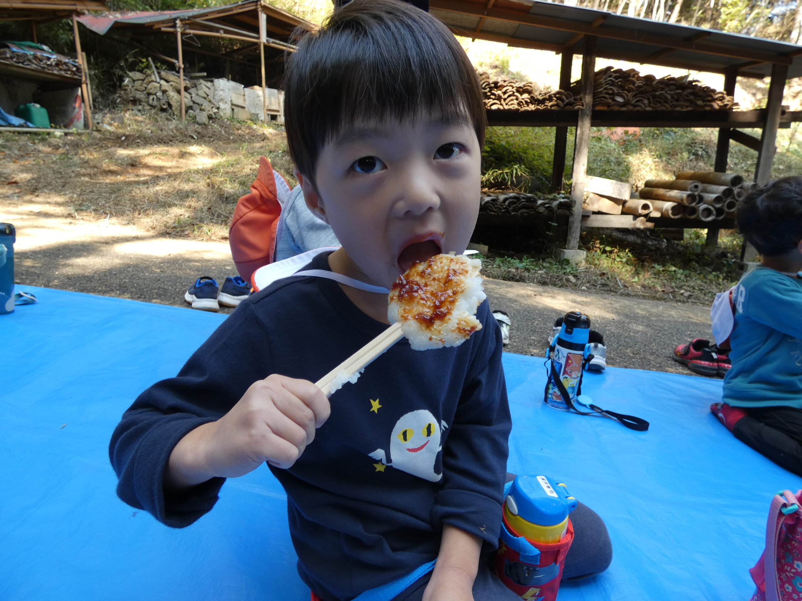 園長先生は、朝握ったおにぎりを焼いて待っていてくれました。