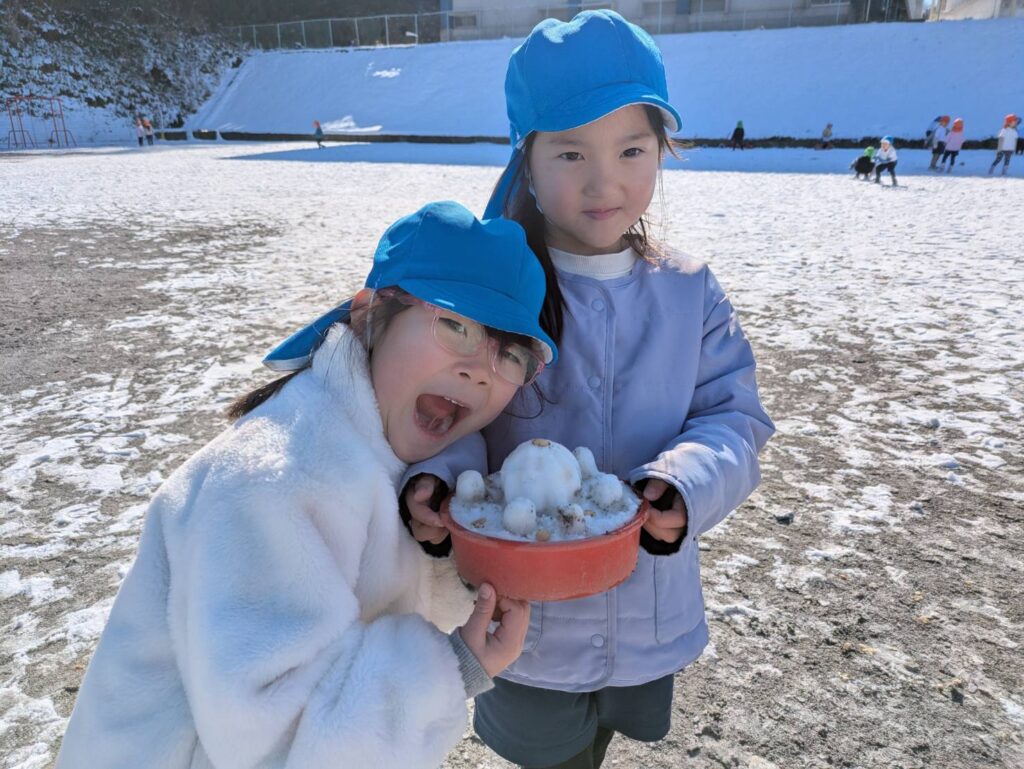雪だるま作りや雪合戦、そり遊びなど今日しかできないことがたくさん!!