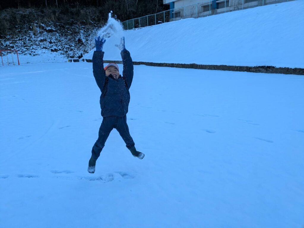 雪を触って手が冷たくなっても、転んでズボンが濡れてしまってもいつまでもいつまでも雪を楽しんでいました。