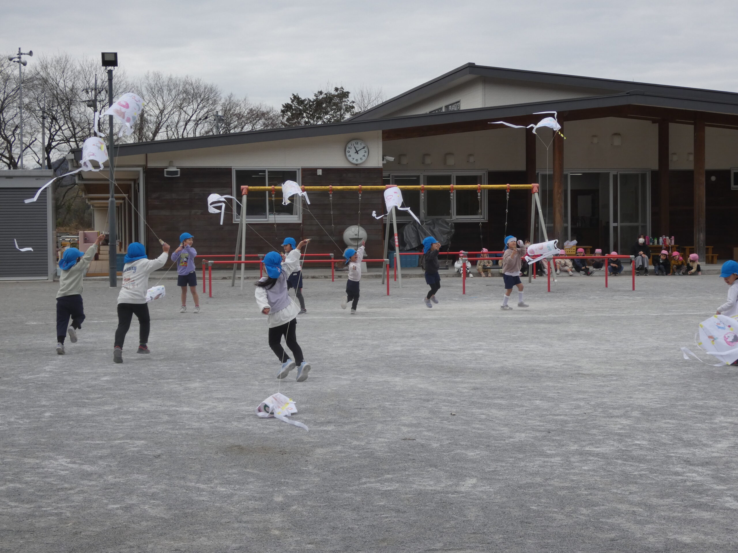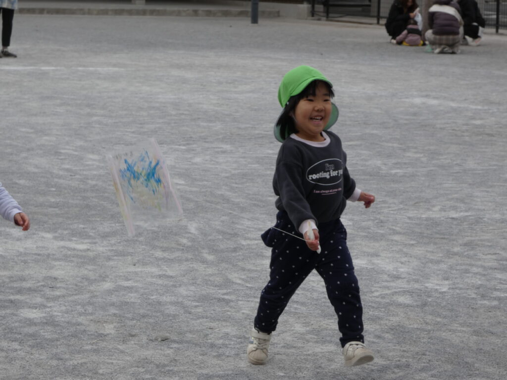 小さいクラスの子どもたちの凧、あがっているかな?(笑)でも楽しそうだからいいですよね(*^▽^*)