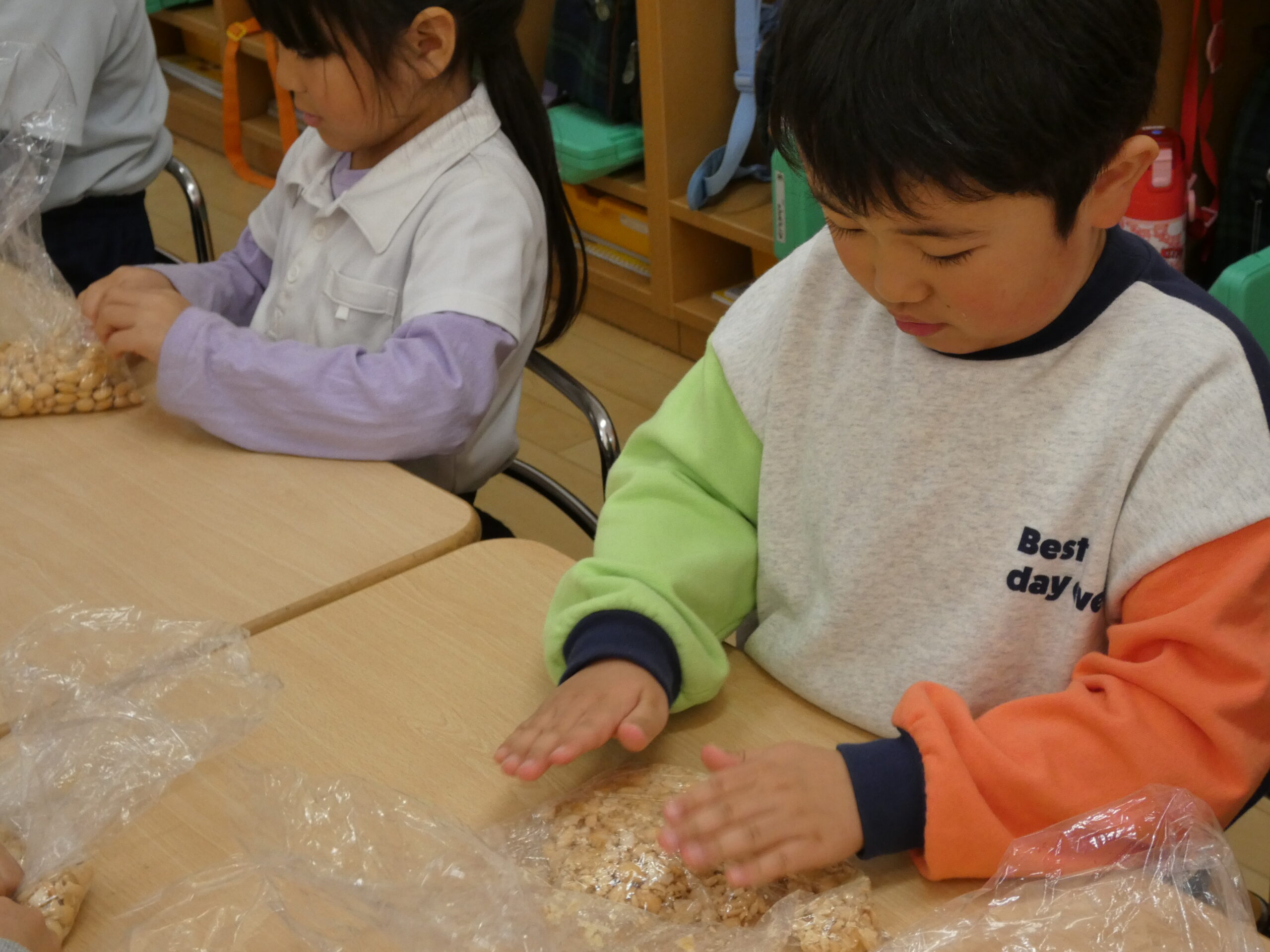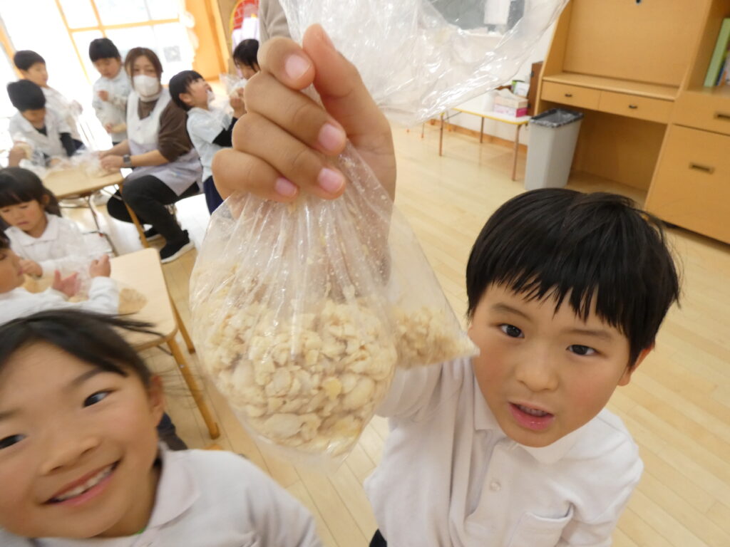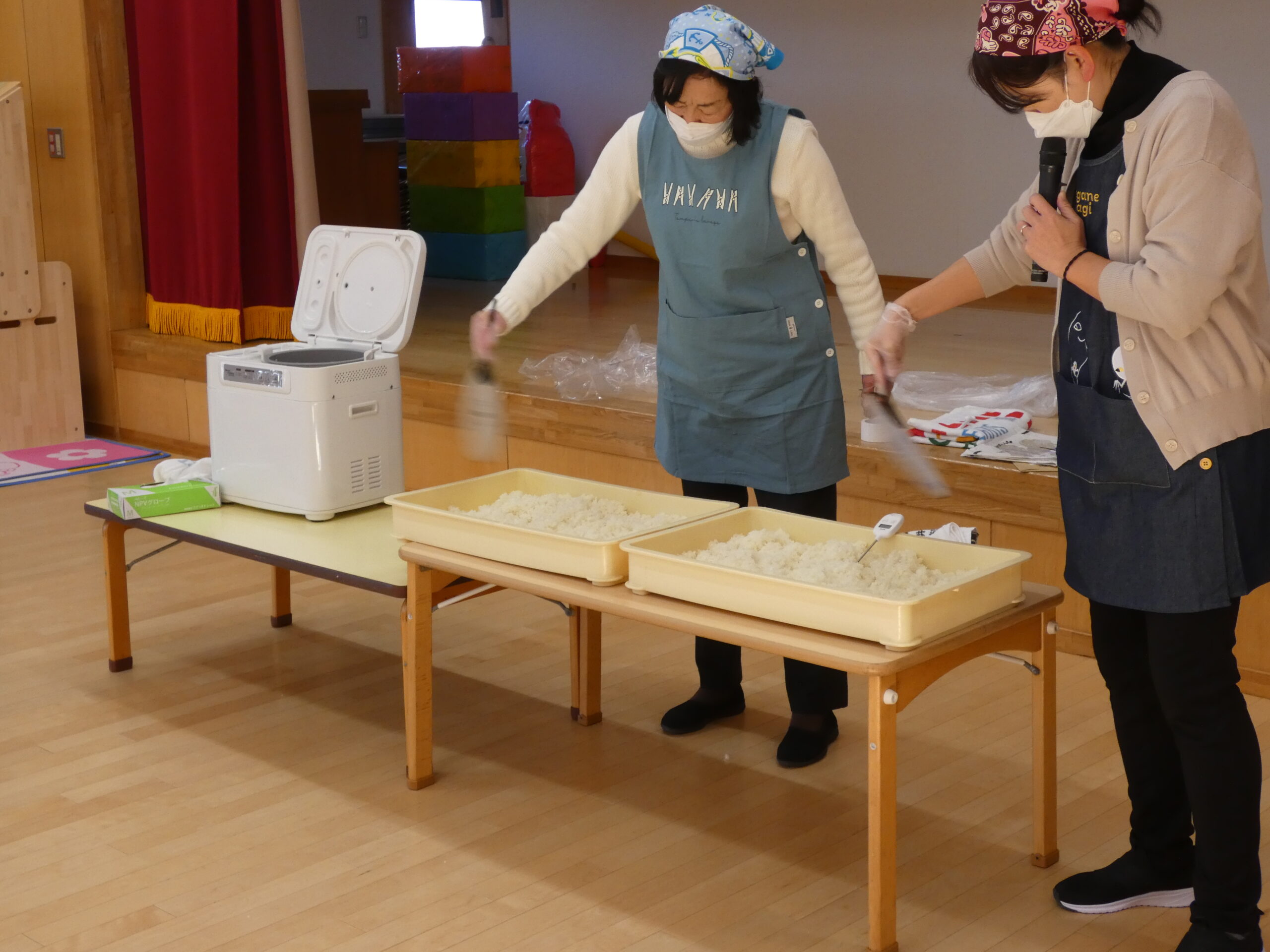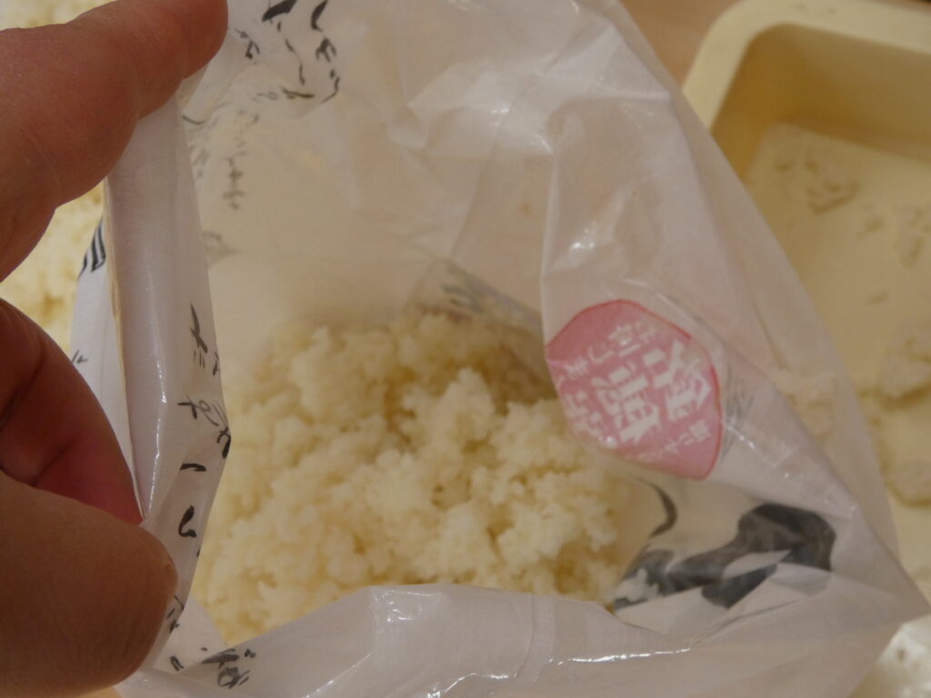 お米とこうじ菌をまぜまぜして袋に入れます。温かくて、赤ちゃんのようです。子どもたちもそっと取り扱ってくれました☺️