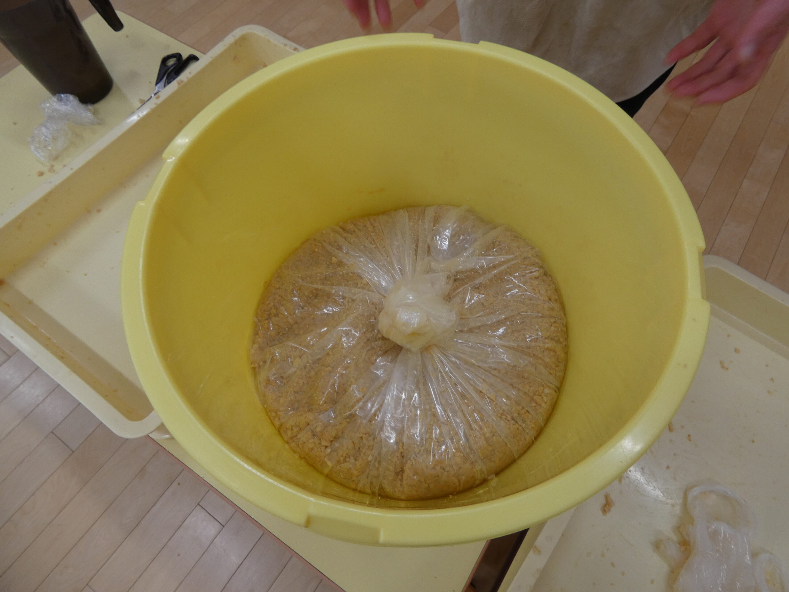 こうして大豆は、おいしいみそになるための工程をこなし静かに待つことになりました。