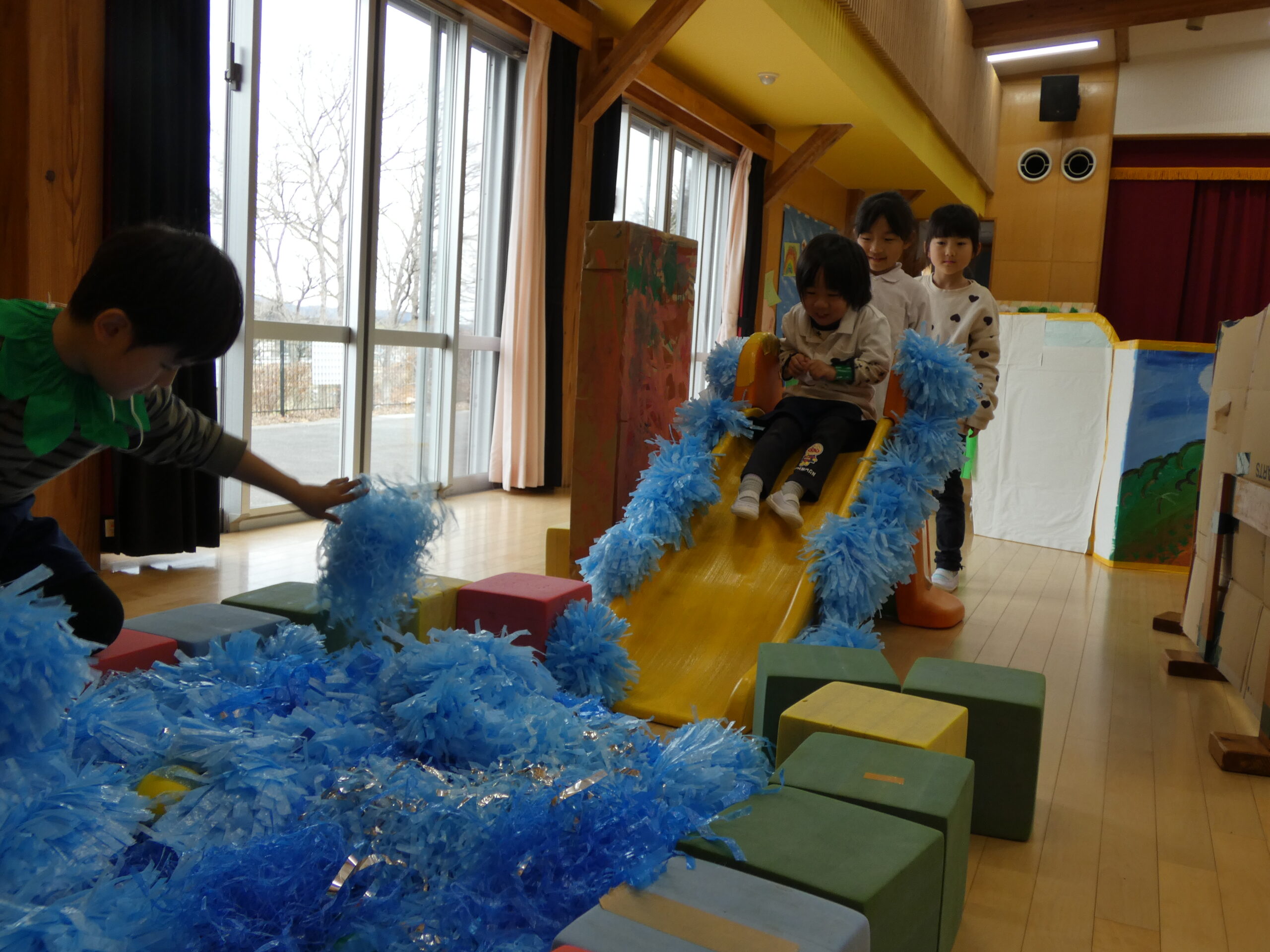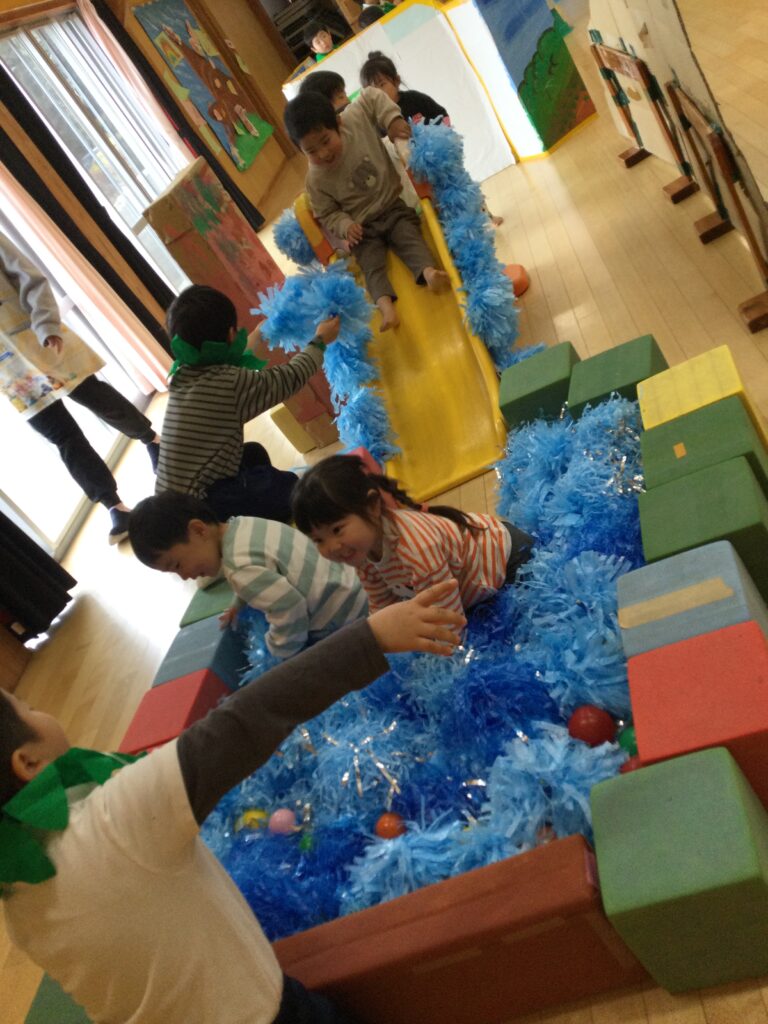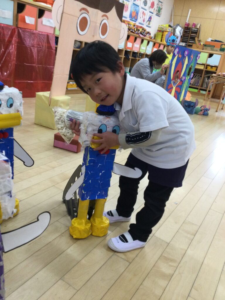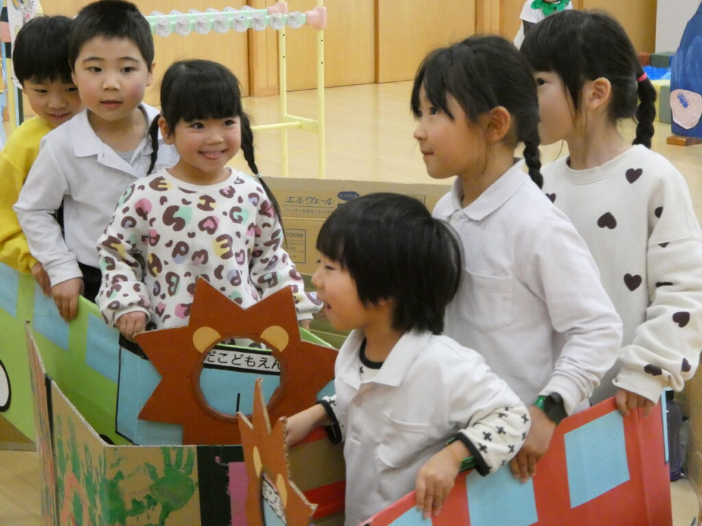 1年を通して仲良くなっていくので、遊びの中からやりたいことも増えてきます。年度末にたてわり保育の総まとめを行うのが恒例行事となっています。