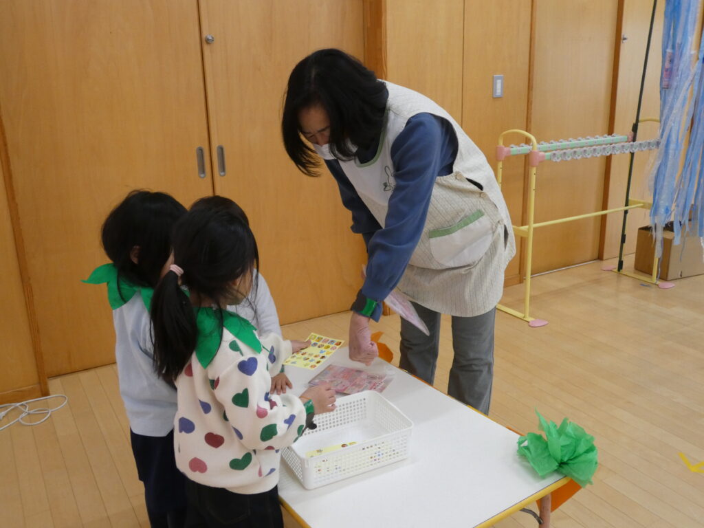 いなだこども園のたてわり保育は、普段のクラスとは別に、異年齢児が関われるグループを作って活動しています。