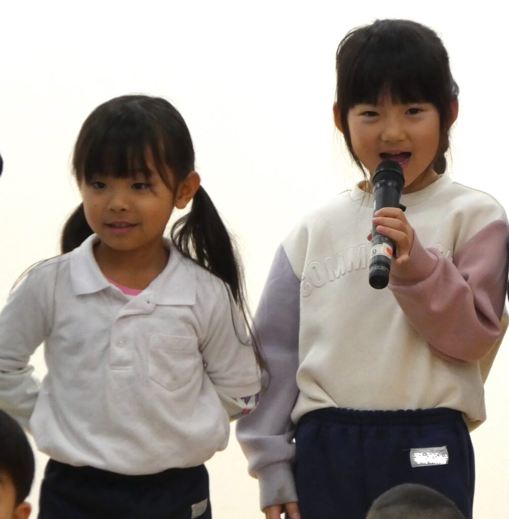 『私の名前は○○です。好きな食べ物は○○です。〇〇しょうがっこへ行きます!』と1人ずつマイクで発表していきます🎤