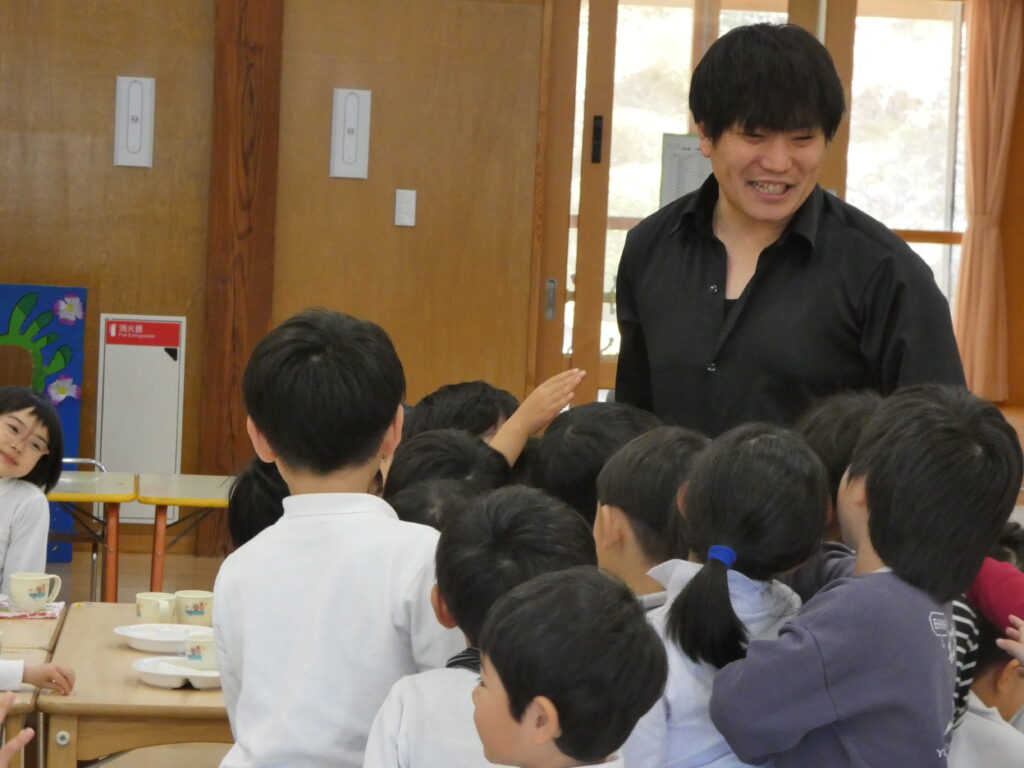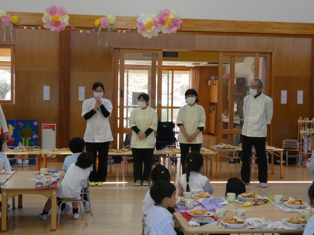 お給食さんに感謝を伝えると『たくさん食べてね!』『こども園の給食で大きくなってくれてありがとう』とお言葉をいただきました。お給食さんは、年長さんが赤ちゃんの頃から離乳食作りをしてくれていました🍳