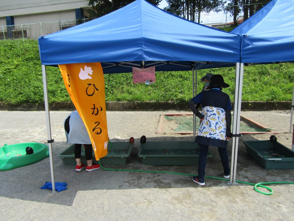 まずはぞう組さんが一番乗りで遊びます!今年度は園児と職員のみの開催なので、楽しんだあとは売り子さんをお願いしました。