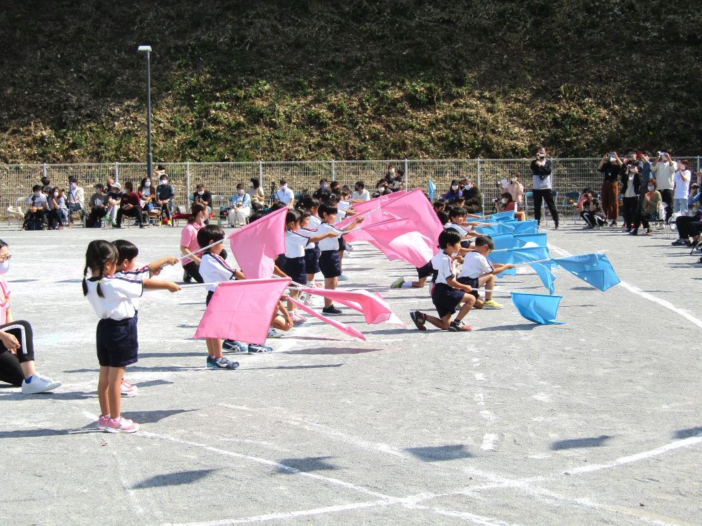 ぞう組さんときりん組さんのカラーガードは、風になびいてとても優雅でした!
