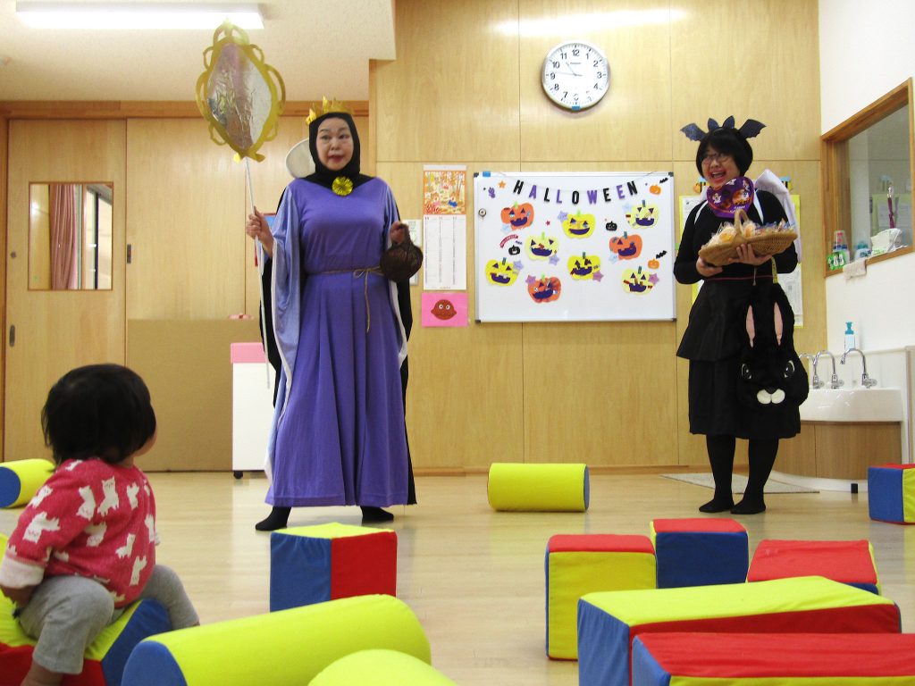 秋が深まる中、今年もハロウィンの季節がやってきました!去年は魔女と弟子がいなだこども園にやってきましたが、今年も怖〜い女王様がやってきましたよ〜・・・