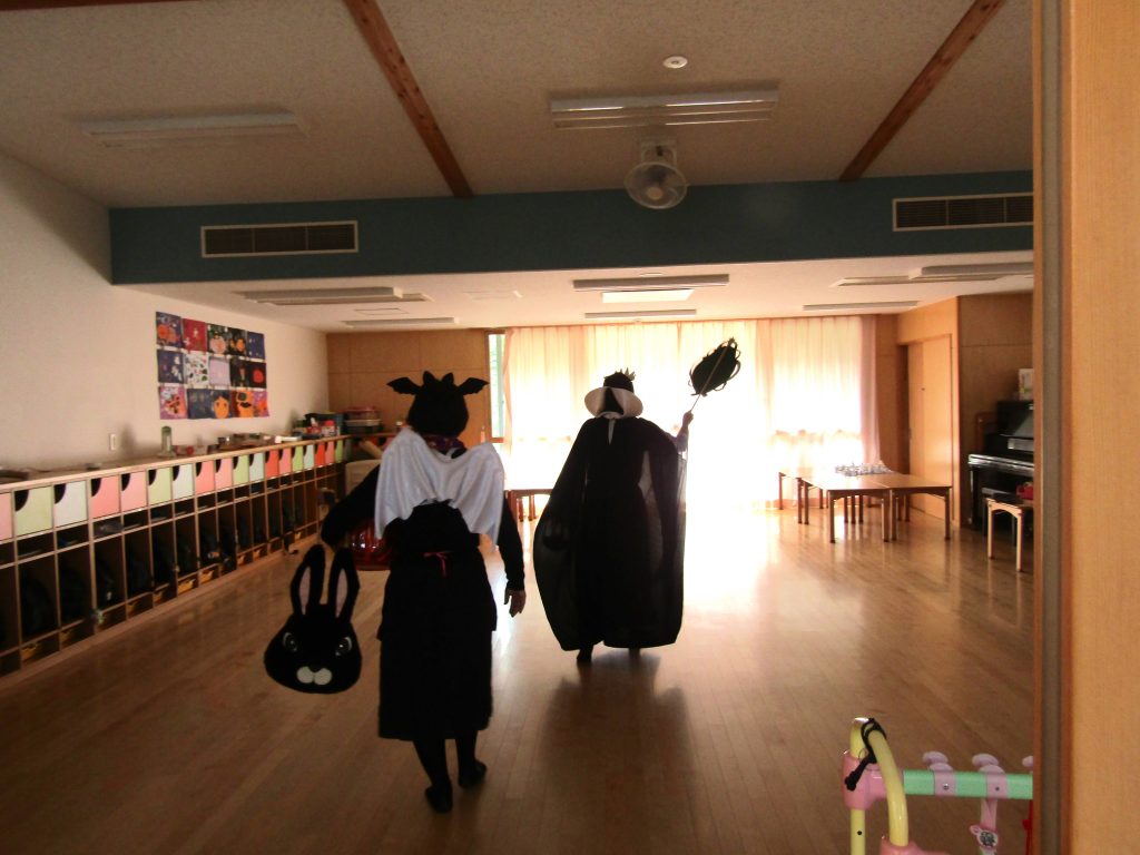 本日は、ハロウィンパーティーをしました。小さいクラスは泣いてしまったけれど、お菓子をもらってニッコリ!ぱんだこあら組さんは、去年は泣いていたのに今年は「トリック・オア・トリート!」と大きな声で言えるようになりました。きりん組さんぞう組さんの手作りバックや衣装も一人一人工夫されていて、お菓子を入れてもらい、大事そうにロッカーにしまっていました。ぜひ今日持ち帰ったバックを見ていただき、もらったお菓子はおうちで召し上がってくださいね!ハッピーハロウィン!