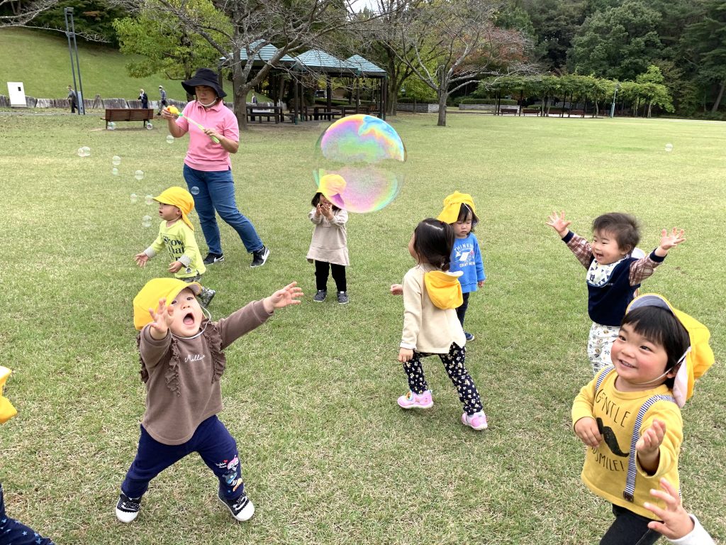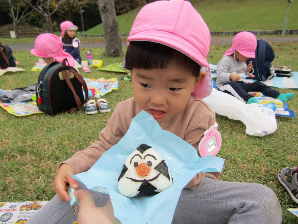 今回秋の晴れ間を利用して、春に延期となっていた遠足を行いました。大型バスに乗り、開放的な屋外で、色々な秋を発見し、思いっきり体を動かした後、おいしいお弁当をいただきました。保護者の皆様、ご理解・ご協力ありがとうございました。