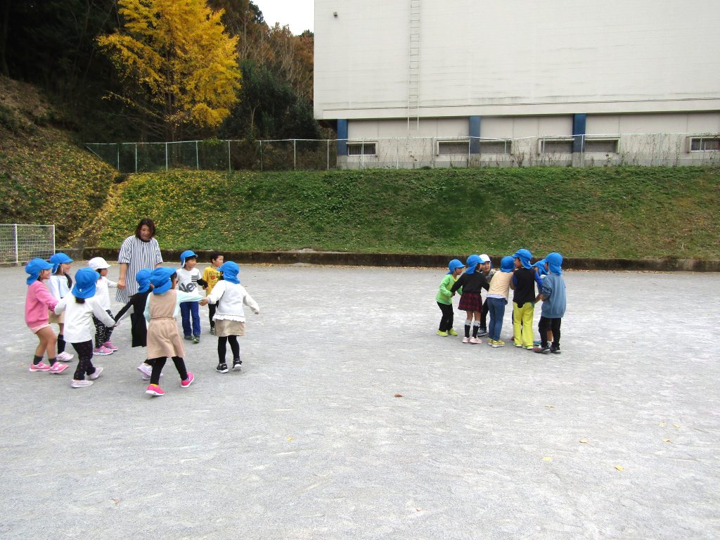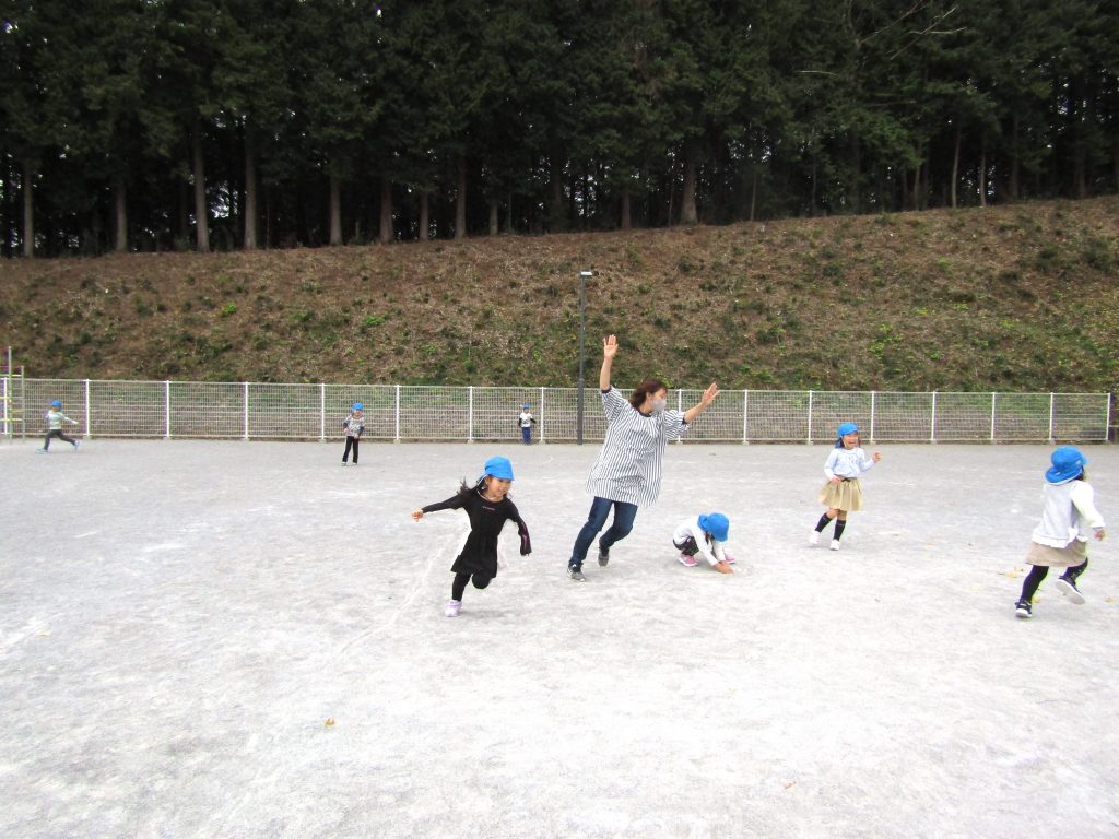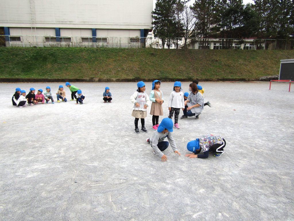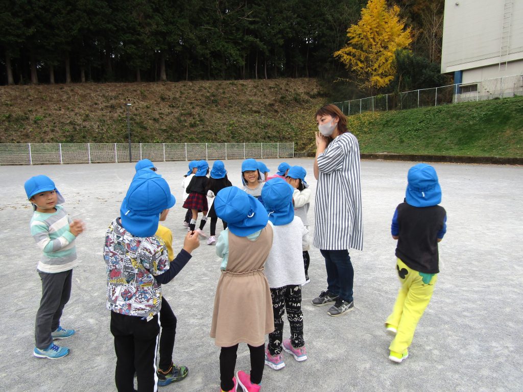 ぞう組さんたちが、元気よく園庭に飛び出してきました!あいにくの曇り空で、気温も低い今日ですが、園児さんたちはへっちゃらです!お外遊びは何をするのかな?藤井先生に聞いてみましょう!