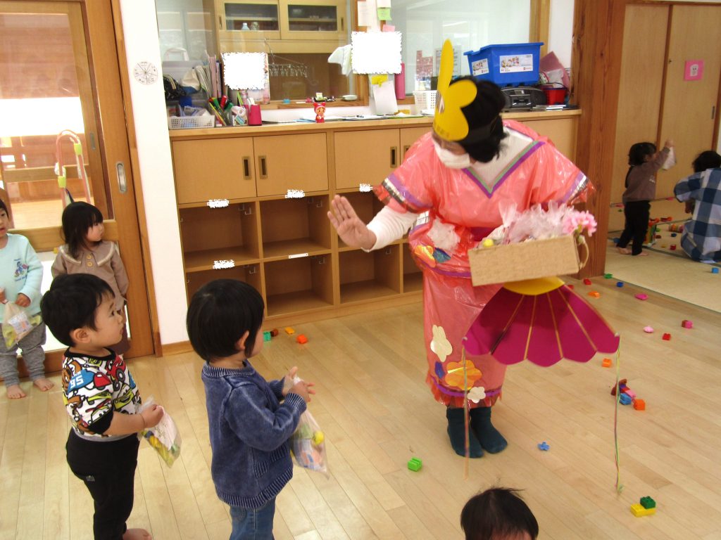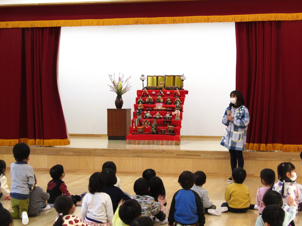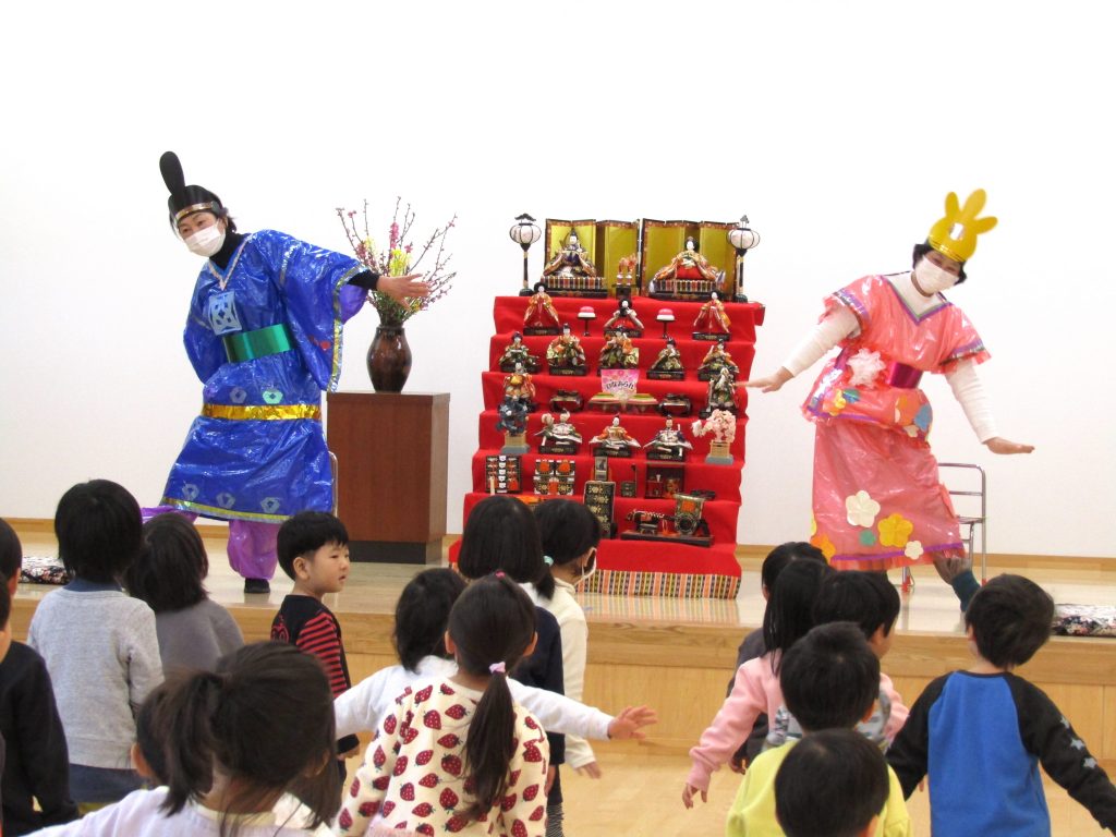 「あかりをつけましょ、ぼんぼりに〜♪」園児たちのかわいい歌声が響いています。今日はいなだこども園のひなまつり会です。園児たちは豪華な7段飾りにびっくり!でもなんだか変だぞ?何かが足りない。「おだいりさまとおひなさまがいない!」「どこ?」園児たちが騒ぎ出しました。