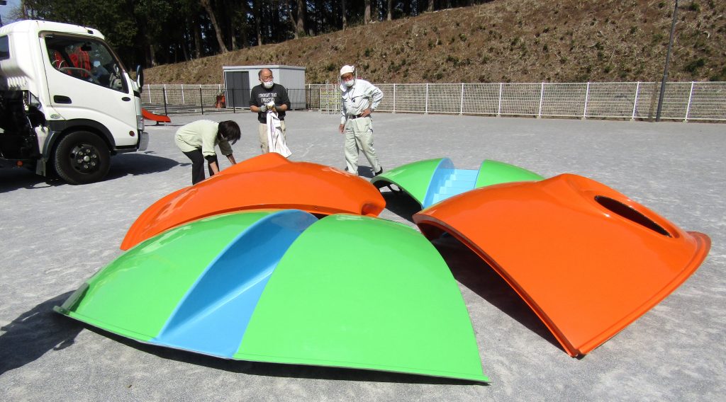 トラックに乗って新しい遊具が運ばれてきました!「あれは何だろう?」みんな興味津々、変わるがわるのぞきにきていました(笑)