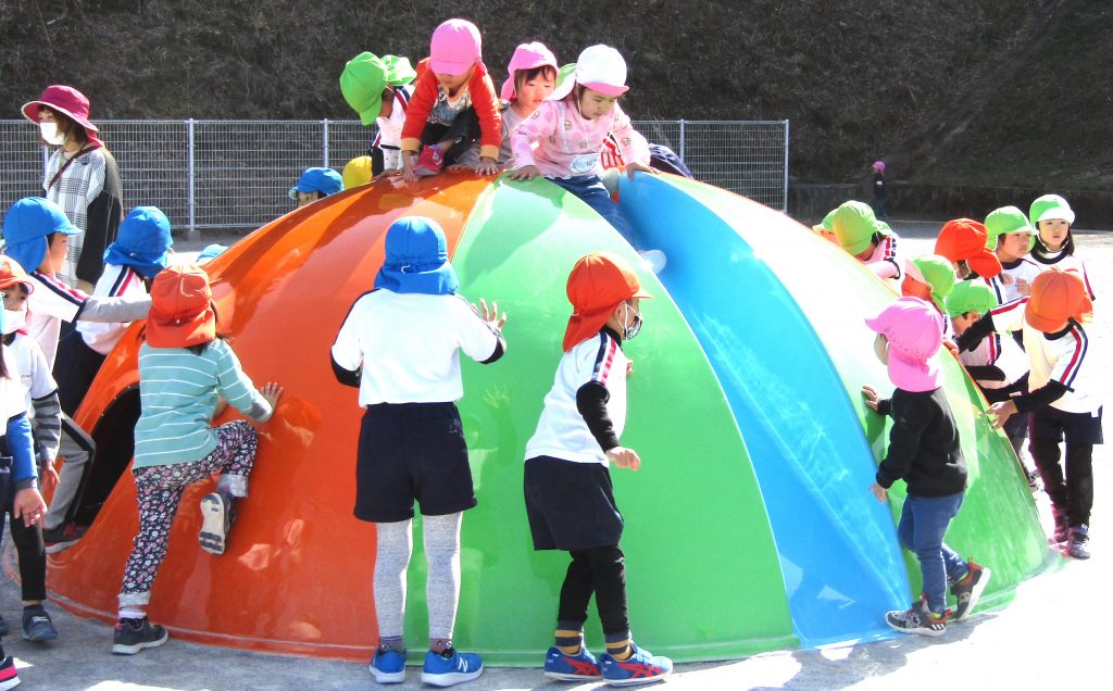 いなだこども園の子どもたちは、普段の遊びの中でもいろいろなことにチャレンジしています。失敗してもなぜ失敗したのかを考え再び挑戦し、最後には目標達成するたくましいっ子供たち!来年度には登り棒と、雲梯(うんてい)がこども園にくる予定ですので、さらなる運動能力向上に期待ですね。