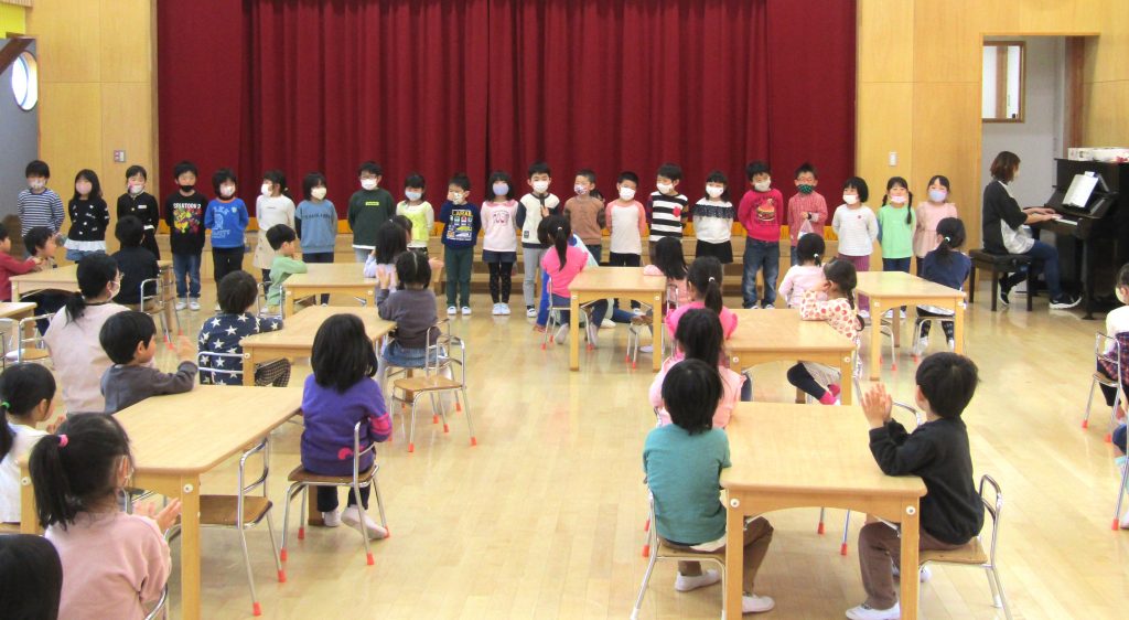 もうすぐぞう組さんとお別れ・・・たくさん遊んでもらって優しくしてもらったね。楽しかった思い出は数え切れないほどあります。様々な行事を通して自分も年長さんになったらいろいろなことができるようになるんだという期待が芽生えました!小学校に行っても頑張ってね!時々は遊びにきてね!みんな待ってるよ。